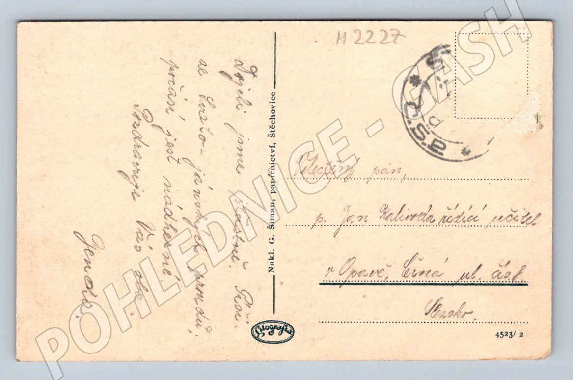 Nabízím starou pohlednici s motivem Štěchovic, která zobrazuje malebný pohled na řeku, okolní lesnaté kopce a část vesnice v pozadí. Pohlednice je vytištěna v černobílém provedení a má klasický menší formát. Jedná se o historický kousek s razítkem, originálním rukopisným textem a adresou na zadní straně. Vydavatel: G. Šiman, papírnictví Štěchovice. Pohlednice je vhodná pro sběratele historických pohlednic z České republiky nebo milovníky regionu Štěchovice.