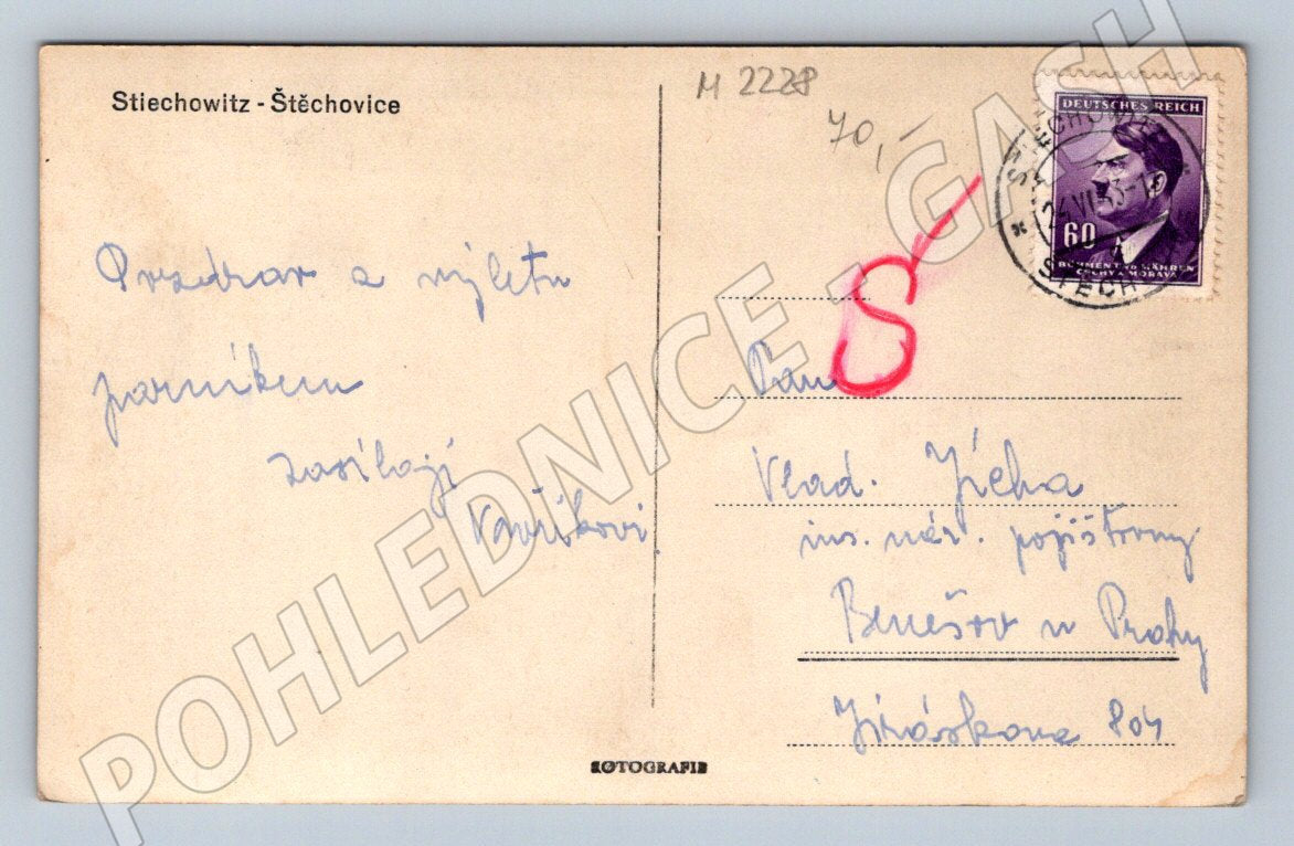 Prodám starou pohlednici s motivem Štěchovic (Stiechowitz) s krásným pohledem na město a okolní krajinu u řeky. Na zadní straně je rukopisný vzkaz a známka Deutsches Reich s razítkem. Pohlednice je v dobrém stavu, odpovídající stáří, mírně opotřebované rohy. Jedná se o malý formát, vydáno před rokem 1950. Skvělá sběratelská položka nebo dekorace do interiéru.