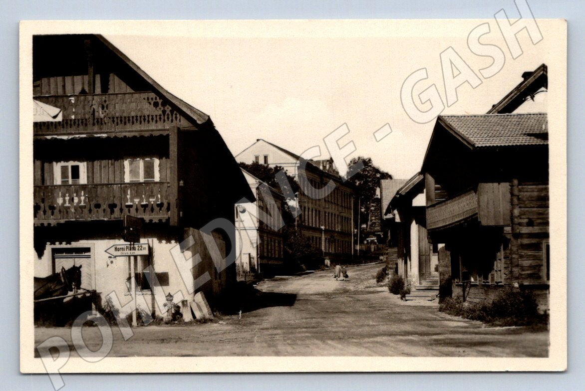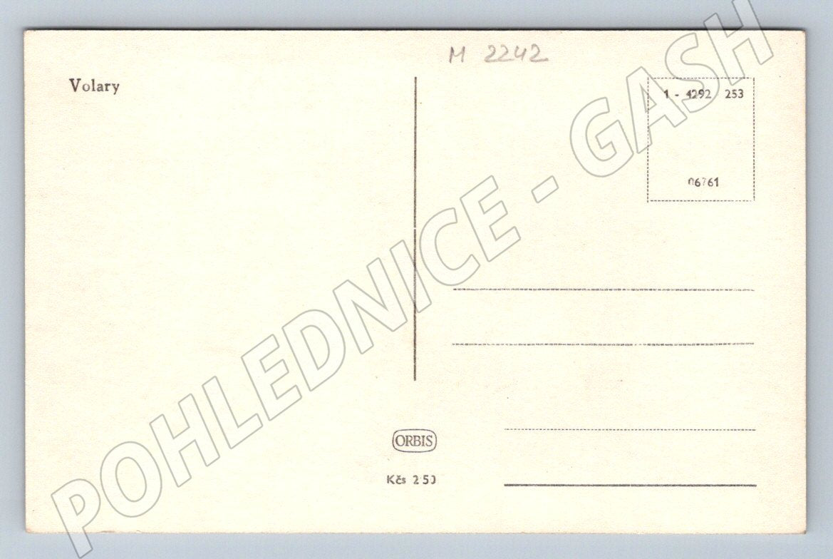Originální černobílá pohlednice města Volary v jižních Čechách, zachycující typickou architekturu tamního regionu s roubenými domy a klidnou ulicí. Na pohlednici je patrné označení směrem na Horní Planou. Pohlednice není prošlá poštou, je ve velmi dobrém sběratelském stavu, čistá, bez známek či nápisů. Vydáno nakladatelstvím Orbis, označení KČs 1,50, číslo 6761. Ideální doplněk sbírky historických pohlednic ze Šumavy a jihočeského regionu, vhodné také jako dárek pro milovníky staré fotografie.