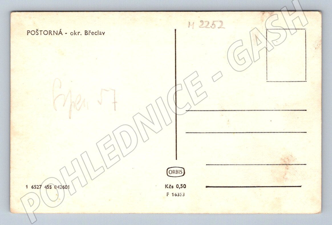Nabízím originální černobílou pohlednici s motivem kostela Navštívení Panny Marie v Poštorné, okres Břeclav. Pohlednice pochází z období před rokem 1950 (datace zadní strany říjen 1957 se patrně vztahuje k pozdějšímu zápisu). Výrazná architektura chrámu, stavba je významnou památkou v regionu. Pohlednice nese znaky stáří, stav viz foto – drobné zažloutnutí, patina v rozích, čistá bez známky nalepení či popisu. Vydal Orbis, č. F 16353, cena 0,50 Kčs. Skvělý sběratelský kousek pro milovníky starých pohlednic s tematikou českých měst a architektury.