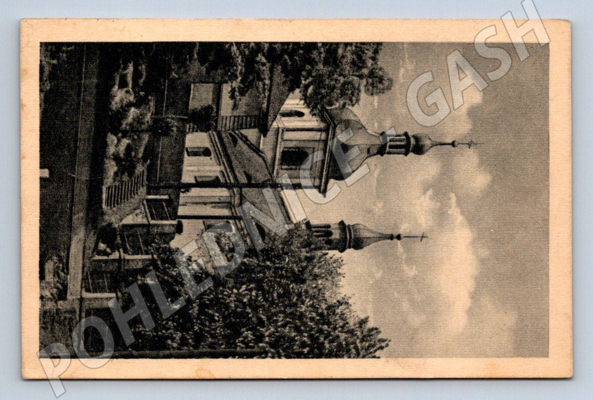 Originální stará pohlednice s vyobrazením kostela v Třebívlicích. Pohlednice je černobílá, prošlá poštou, s razítkem a známkou z období Československa. Na zadní straně je ručně psaný pozdrav, adresa a poštovní známka s portrétem. Pohlednice nese stopy stáří a běžného opotřebení, rohy jsou mírně ošoupané. Skvělý sběratelský kousek či dekorace s tématem české sakrální architektury.
