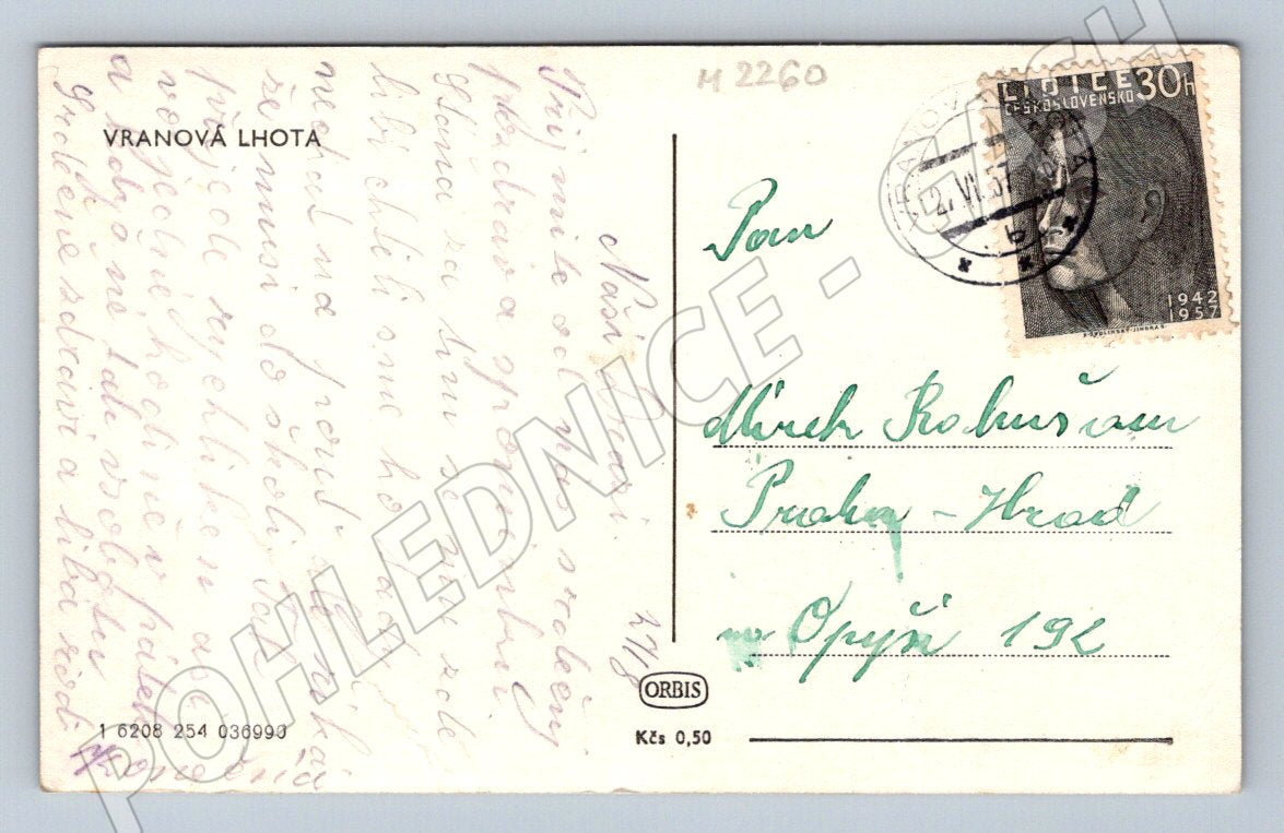 Vranová Lhota – pohlednice, malý formát, do 1950, razítkovaná