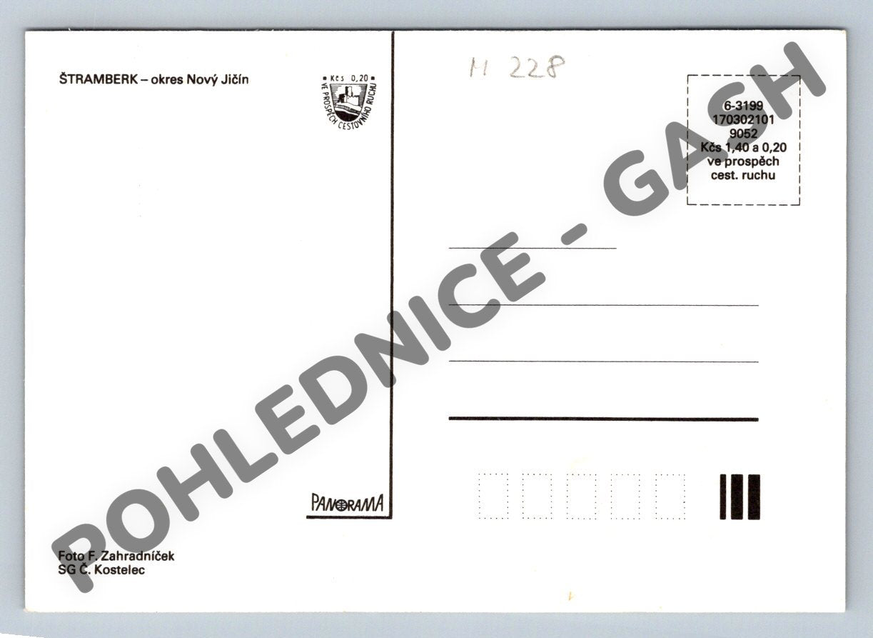 Originální víceobrázková pohlednice města Štramberk z okresu Nový Jičín. Pohlednice zachycuje ikonické památky města – Štramberskou Trúbu, náměstí, městské domy, venkovskou architekturu i přírodní scenérie včetně jeskyně a místního koupaliště. Na zadní straně je vytištěný text s označením ŠTRAMBERK – okres Nový Jičín, známka na podporu cestovního ruchu a vyznačení pro adresu i známku. Vydavatel Panorama, fotografie F. Zahradníček. Výborný stav, nepopsaná, ideální pro sběratele, milovníky Beskyd nebo jako dárek.