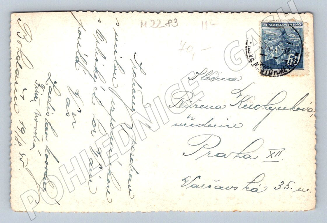 Starší černobílá pohlednice s motivem tabule označující obec Bohdašín (okres Nové Město nad Metují). Na zadní straně pohlednice ručně psaný text, adresováno do Prahy, opatřeno známkou Československo 60h a razítkem. Pohlednice nese známky běžného opotřebení, místy lehce zažloutlý papír, stav viz foto. Ideální pro sběratele historických pohlednic z Čech a zájemce o regionální historii.