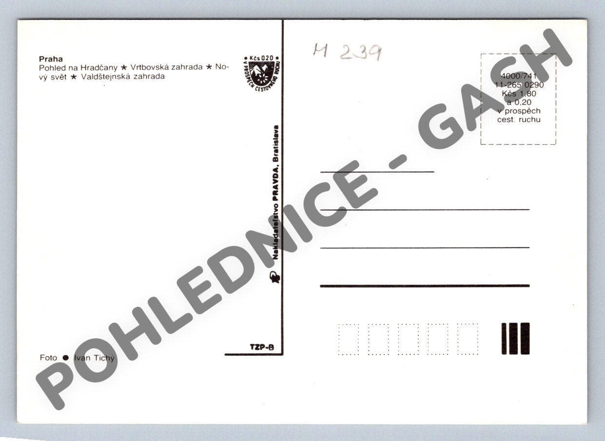 Atraktivní víceobrázková pohlednice PRAHA zachycující pohledy na Hradčany, Vrtbovskou zahradu, Nový svět a Valdštejnskou zahradu. Na přední straně naleznete několik ikonických památek hlavního města Prahy společně s erbem. Pohlednice je neprošlá, čistá, ve velmi dobrém zachovalém stavu. Vydavatel: Nakladatelstvo PRAVDA, Bratislava. Foto: Ivan Tichý. Ideální pro sběratele nebo jako suvenýr z Prahy.