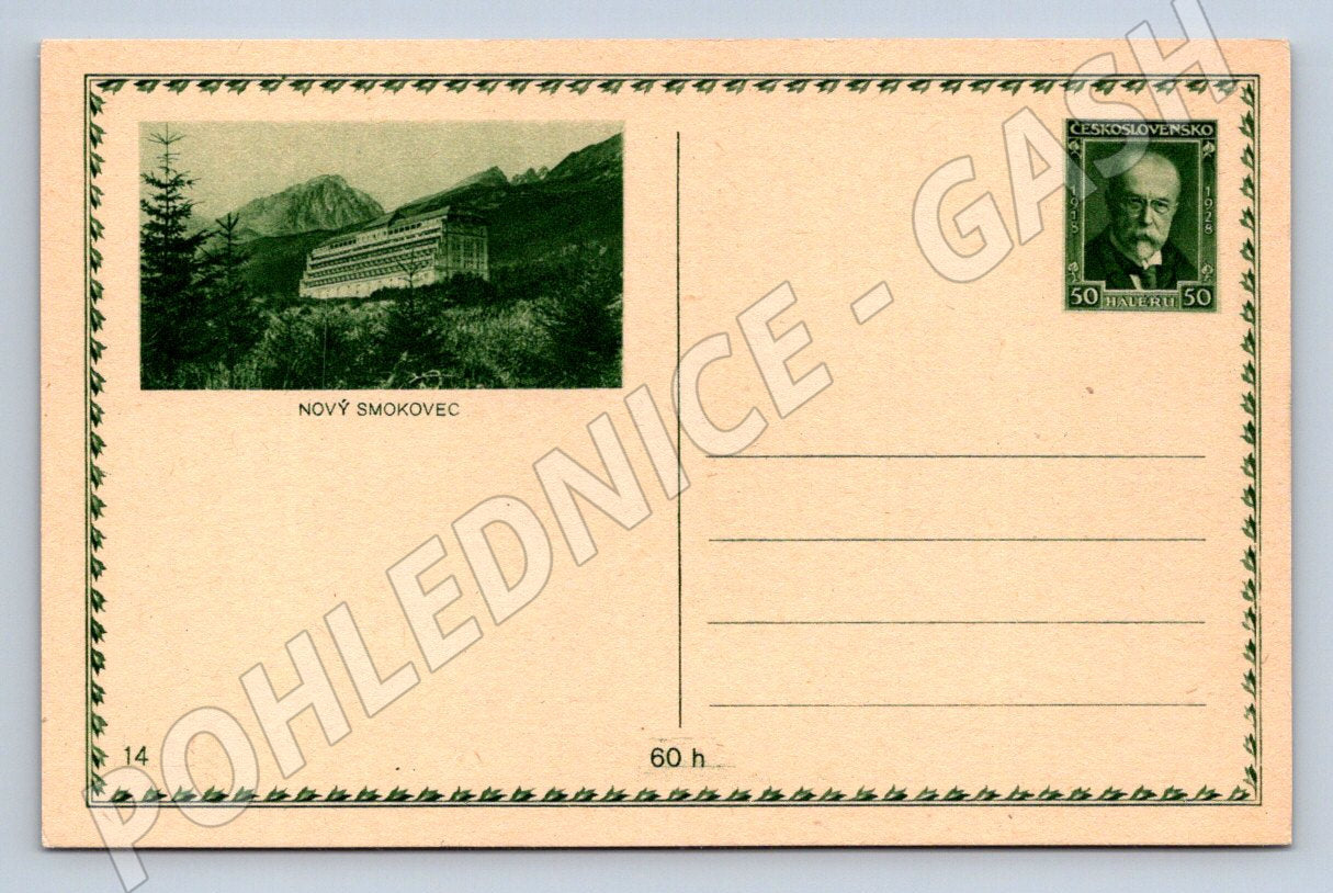 Starý poštovní lístek z období Československa s vyobrazením Grandhotelu v Novém Smokovci, který leží ve Vysokých Tatrách. Na líci je také vytištěná známka s portrétem T. G. Masaryka v hodnotě 50 haléřů. Lístek nebyl použit a je ve velmi zachovalém stavu, bez popsané zadní strany. Krásný sběratelský kousek připomínající období první republiky a slovenské Tatry.