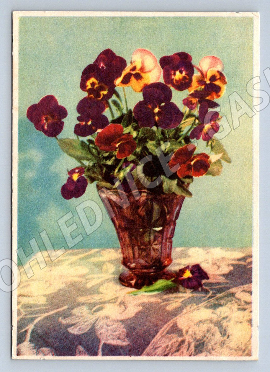Starý sovětský pohled květiny ručně psané 1958 (M2418)