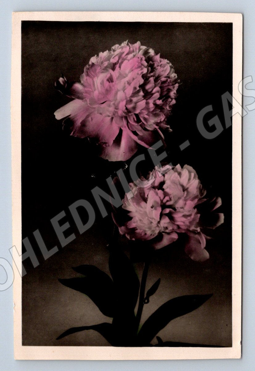 Nabízím originální starou pohlednici z roku 1958 s fotografií květů pivoněk. Pohlednice je psaná rusky a maďarsky, s věnováním ručně psaným modrým inkoustem. Na zadní straně lze vidět adresu a další údaje. Pohlednice pochází z tehdejšího Kislovodska a je v dobrém stavu s jemnými známkami stáří. Skvělý sběratelský kousek dokumentující uměleckou i písemnou kulturu období 50. let 20. století v Sovětském svazu.