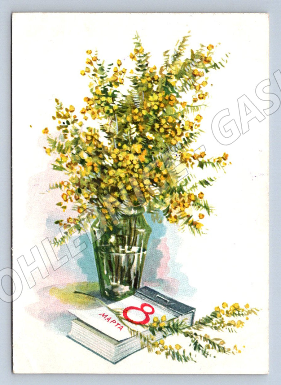 Nabízím k prodeji dobrou sovětskou pohlednici s květinami v lahvi s kalendářním datem 8. března, což symbolizuje Mezinárodní den žen. Pohlednice je ilustrována malířem V.A. Gedě a obsahuje ručně psané věnování v ruštině na zadní straně. Karta pochází z doby Sovětského svazu a nese typické znaky tehdejšího tisku a cenovou známku 20 kopějek. Pohlednice je vhodná pro sběratele sovětských dobových artefaktů, milovníky etnografie a historických materiálů. Stav je vizuálně velmi dobrý, bez výrazných poškození.