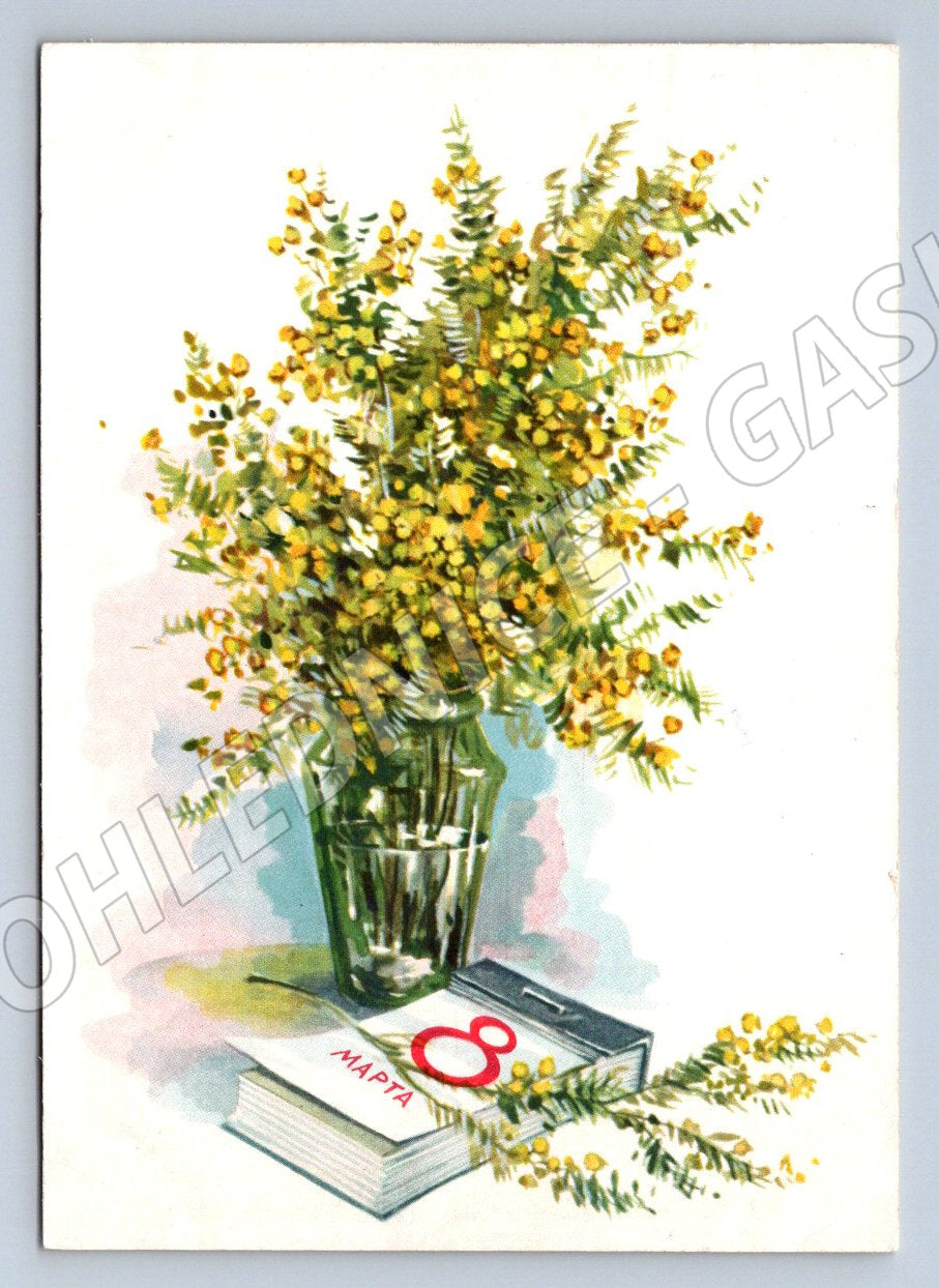 Nabízím zajímavou vintage pohlednici z roku 1959 s ilustrací k Mezinárodnímu dni žen - 8. března. Na přední straně je malba vázy s rozkvetlými žlutými květy a kalendářem s datem 8 марта (8. března) od umělce V. A. Gedé. Na zadní straně je rukopisné věnování v ruštině, což dodává pohlednici retro charakter a autentický nádech sovětské éry. Pohlednice je v dobrém stavu, vhodná pro sběratele pohlednic a zájemce o etnografii a historii. Ideální sběratelský kousek, který potěší každého milovníka starých pohlednic a folklóru.
