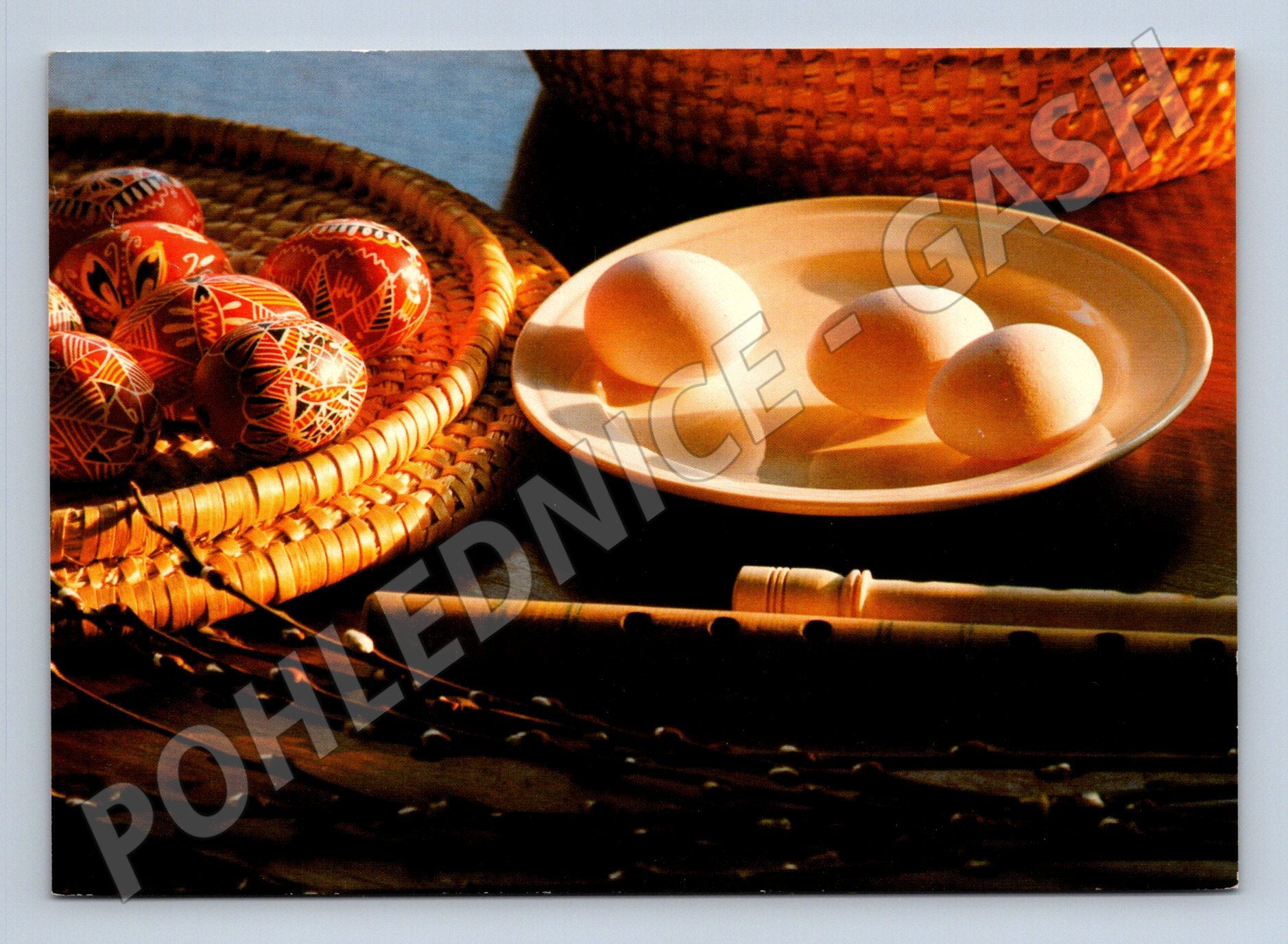 Pohlednice Velikonoce kraslice a píšťala cca 1970-1980 (M24339)