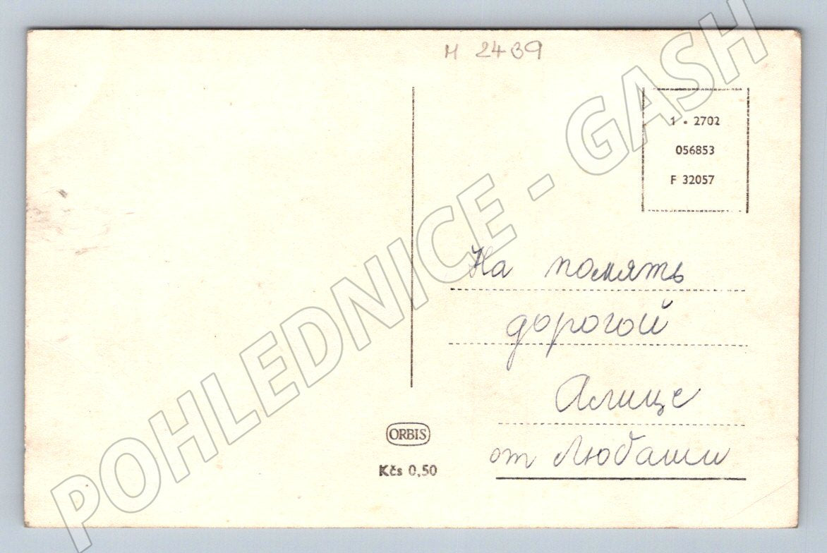 Nabízím starou černobílou pohlednici zobrazující větvičky kvetoucích květů, pravděpodobně jabloně nebo třešně. Pohlednice je v dobrém stavu, bez výrazných poškození. Na zadní straně je ručně psaný text v ruštině a razítko vydavatele ORBIS s cenou 0,50 Kčs. Text na zadní straně dává pohlednici osobní nádech a může mít sběratelskou hodnotu pro zájemce o etnografické a historické materiály z oblasti střední Evropy nebo Ruska. Ideální pro sběratele starých pohlednic nebo milovníky přírodních fotografií.