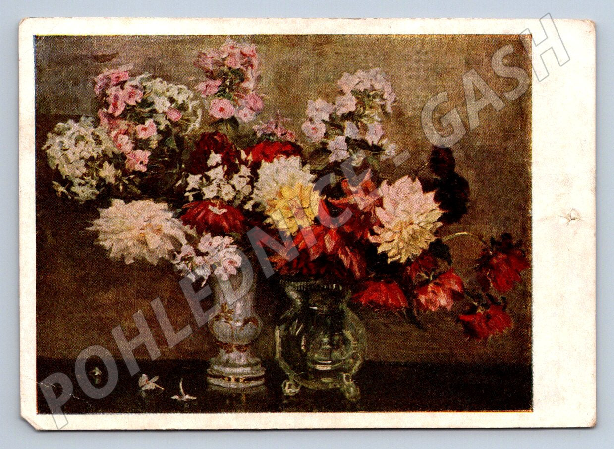 Sovětská pohlednice 1954 - květinové zátiší od A. Másnikova