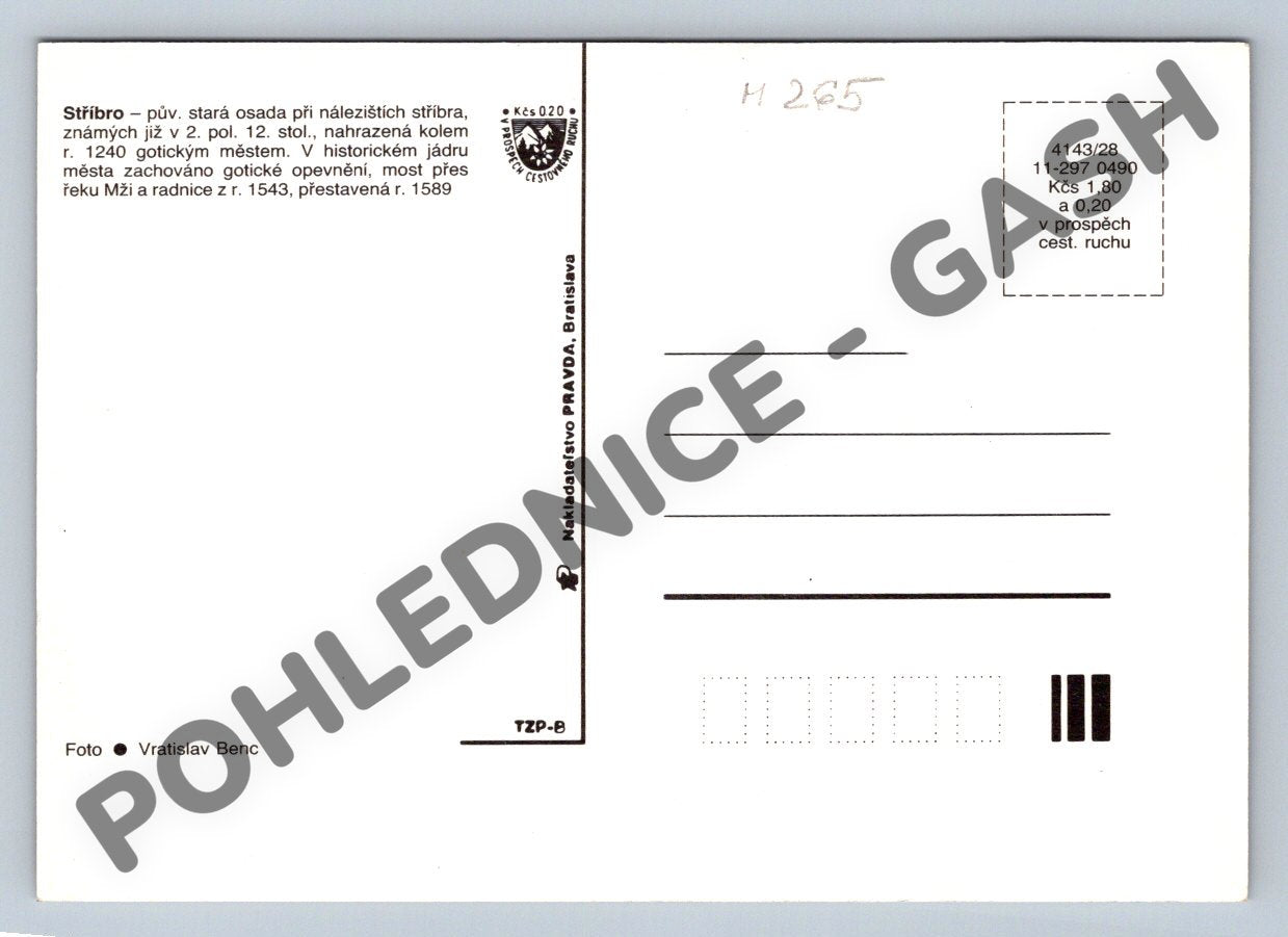 Originální pohlednice města Stříbro s vícenásobným pohledem na historické památky včetně radnice, gotického opevnění, mostu přes řeku Mži a náměstí. Na zadní straně naleznete stručný popis historie města: Stříbro bylo původní osadou při nalezištích stříbra již ve 2. polovině 12. století, kolem roku 1240 nahrazeno gotickým městem. Zachováno gotické opevnění, most a radnice z 16. století. Fotografii zhotovil Vratislav Benc. Pohlednice je ve velmi dobrém stavu, vhodná do sbírky nebo jako dárek.