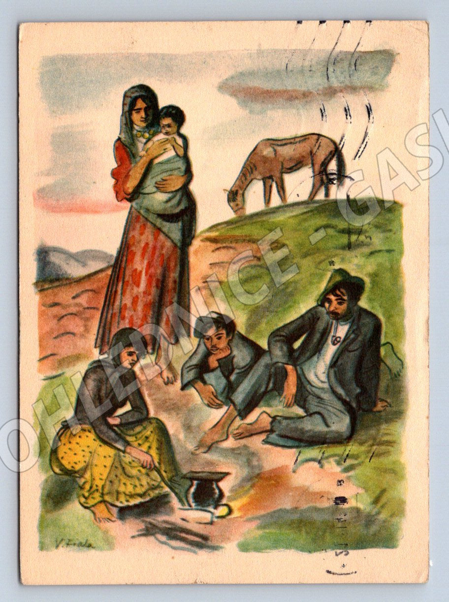 Nabízím zajímavou starou pohlednici s motivem Jaro na Slovensku od Václava Fialy, vydanou Českou galerií jako součást XXVII. série (497. publikace). Pohlednice je oboustranně použitá – z jedné strany malebný ilustrativní motiv zachycující slovenské venkovské postavy v období jara, z druhé strany je použitá jako poštovní lístek se známkou Böhmen und Mähren a razítkem z roku 1940. Pohlednice je v pěkném zachovalém stavu s viditelnými známkami používání a stářím, ideální pro sběratele etnografických a historických pohlednic nebo fanoušky umění Václava Fialy.