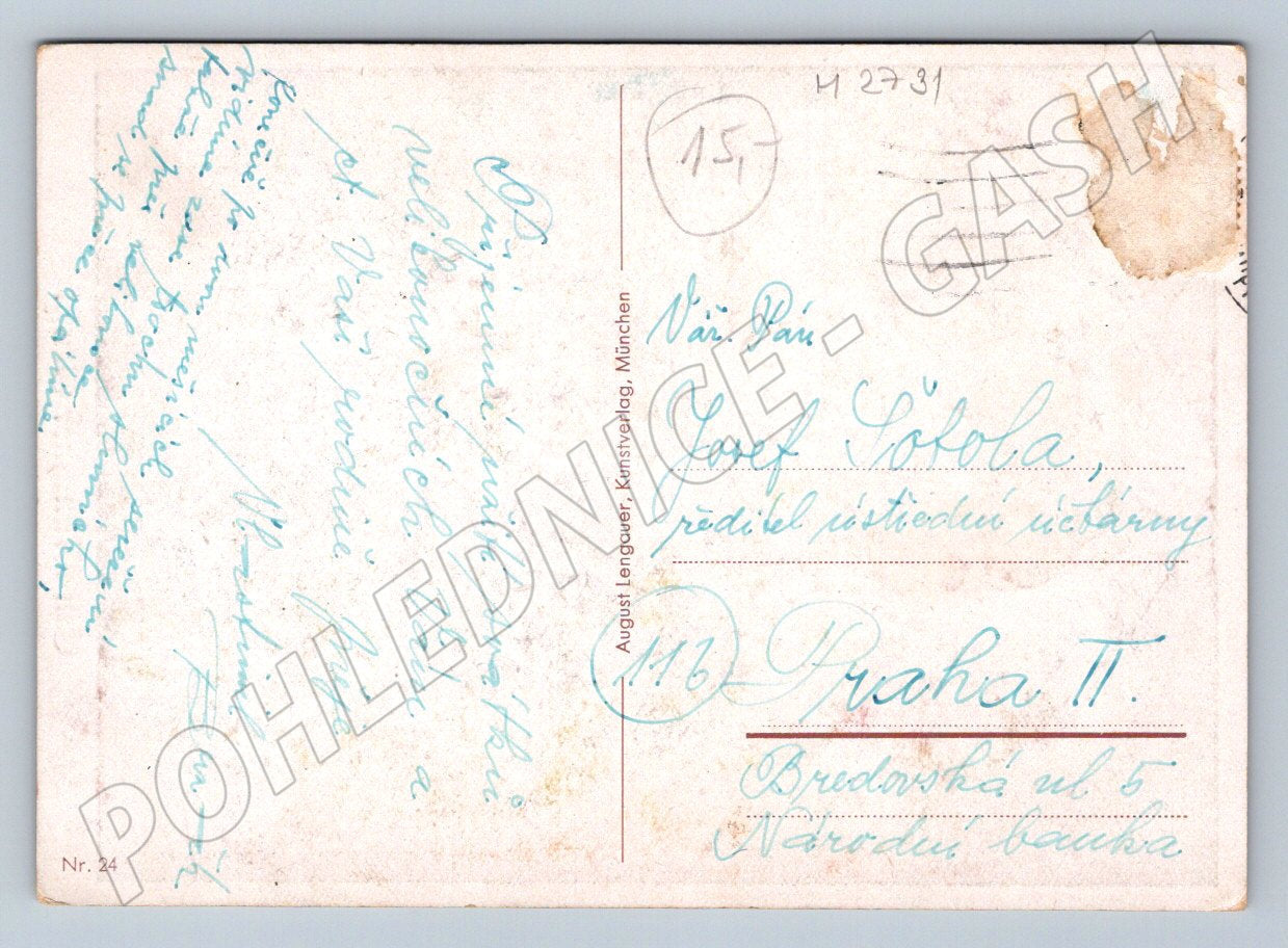 Nabízím krásnou vintage pohlednici s malířským motivem dívky v tradičním bavorském kroji, která drží velký půllitr piva a je obklopena květinami a preclíkem. Na pozadí je viditelná architektura typická pro Mnichov, což podtrhuje text na pohlednici Ein Münchner Gruß! (Mnichovský pozdrav). Pohlednice má na rubové straně ručně psaný a čitelný vzkaz s adresou do Prahy, což dokládá autentický historický charakter. Stav pohlednice je dobrý s viditelnými známkami stáří, jako jsou mírné ohyby rohů a drobné skvrny z horního rohu zadní strany. Pohlednice je vhodná pro sběratele uměleckých a historických pohlednic, milovníky bavorských motivů nebo jako dekorativní kousek s nádechem nostalgie.