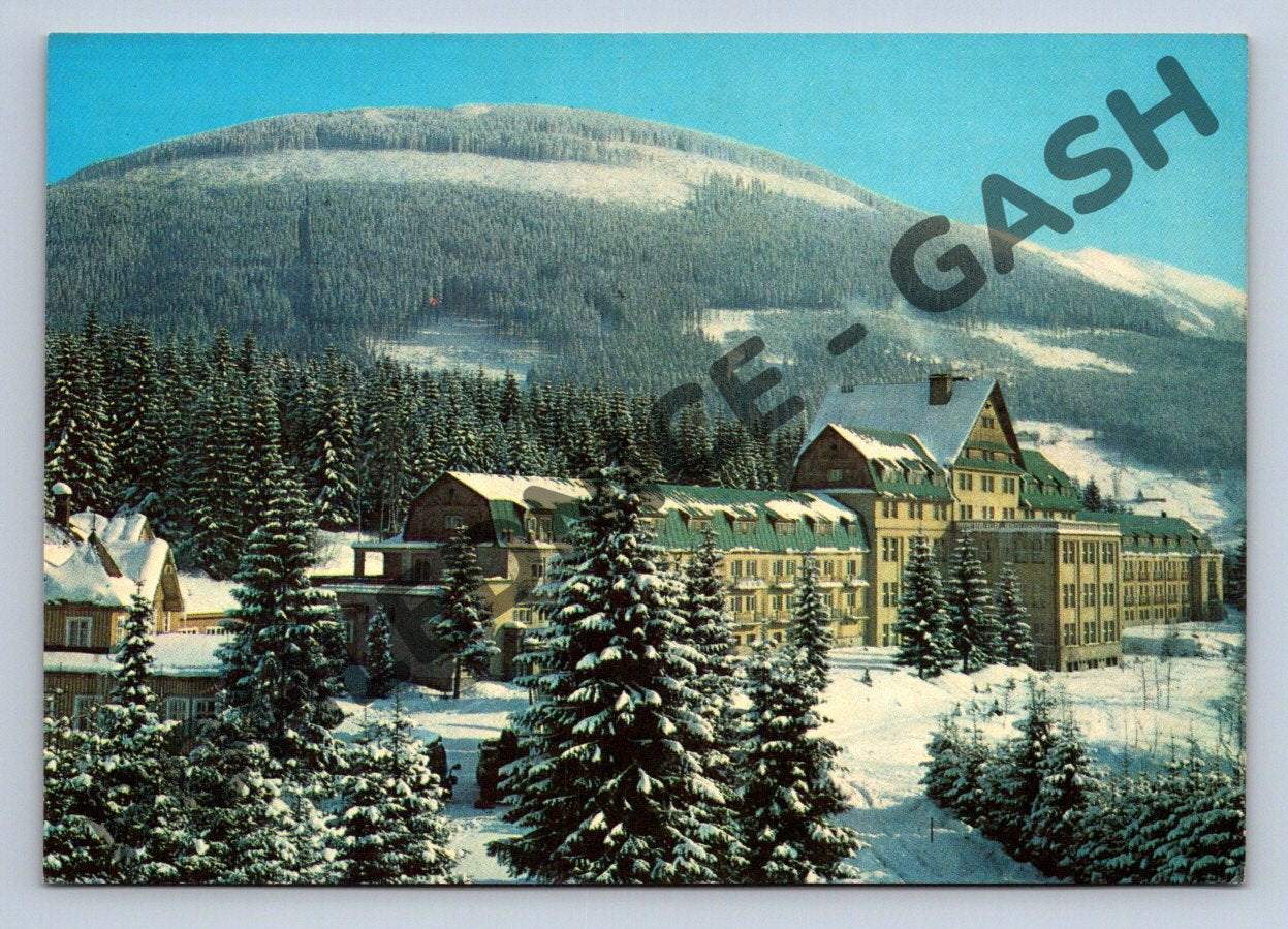 Originální barevná pohlednice se zimním motivem Krkonoš, konkrétně s pohledem na Špindlerův Mlýn – vojenskou zotavovnu v Bedřichově. Na přední straně je krásná zimní krajina plná sněhem pokrytých stromů a budov na pozadí hor. Zadní strana je vyplněná ručně psaným textem a opatřená poštovní známkou Československa a razítkem. Pohlednice nese známky poštovního použití, což přidává na její dobové autentičnosti. Ideální k rozšíření sbírky historických pohlednic z českých hor a rekreačních objektů. Rozměr klasický malý formát, stav odpovídající stáří, viz foto.