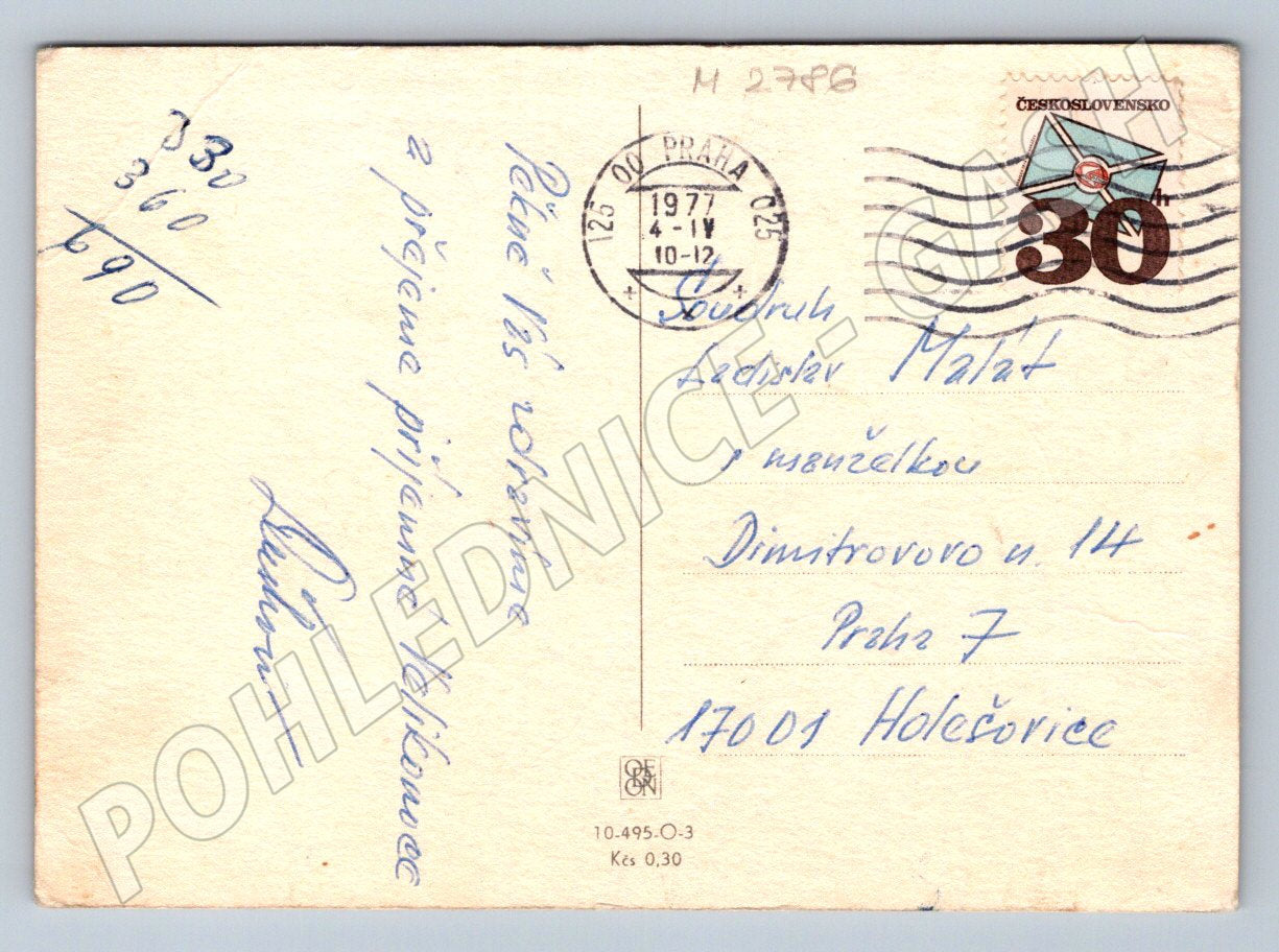 Tato vintage pohlednice zobrazuje barevnou kresbu od známého českého malíře Josefa Lady. Motivem jsou tři postavičky v lidových kostýmech s meči a bubínkem na pozadí zeleného kopce a polské vlajky. Pohlednice pochází z období Československa, jak dokládá razítko z roku 1977 a poštovní známka s hodnotou 30 haléřů. Pohlednice je použita, na zadní straně je rukopisná zpráva a adresa, což dodává autentičnost a historickou hodnotu. Stav pohlednice je zachovalý s lehkým opotřebením rohů a okrajů. Ideální pro sběratele lidového umění, etnografie, nebo fanoušky tvorby Josefa Lady.