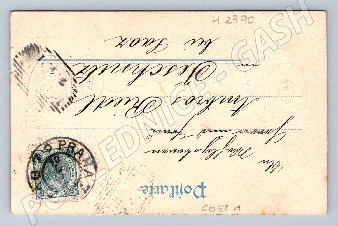 Starý velikonoční pohled s vajíčky z Rakouska-Uherska, razítkovaný Praha