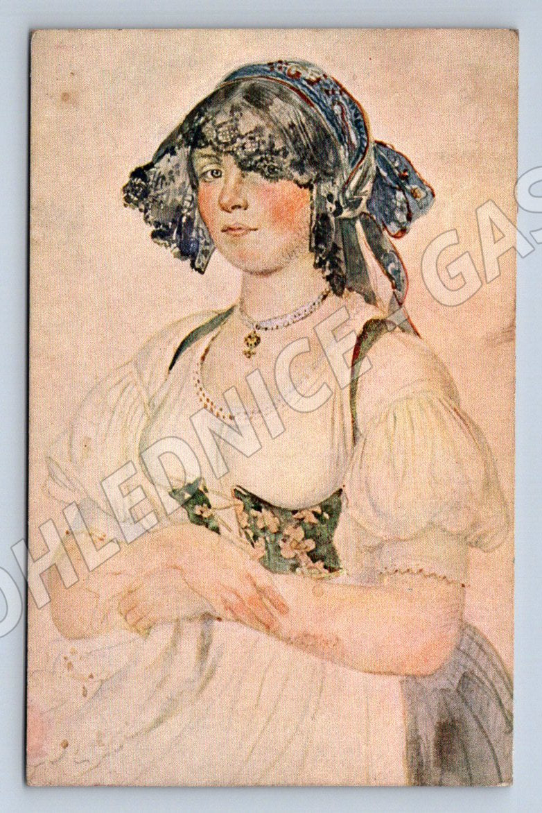 Pohlednice Josef Mánes - Děvče z Německobrodska, etnografie