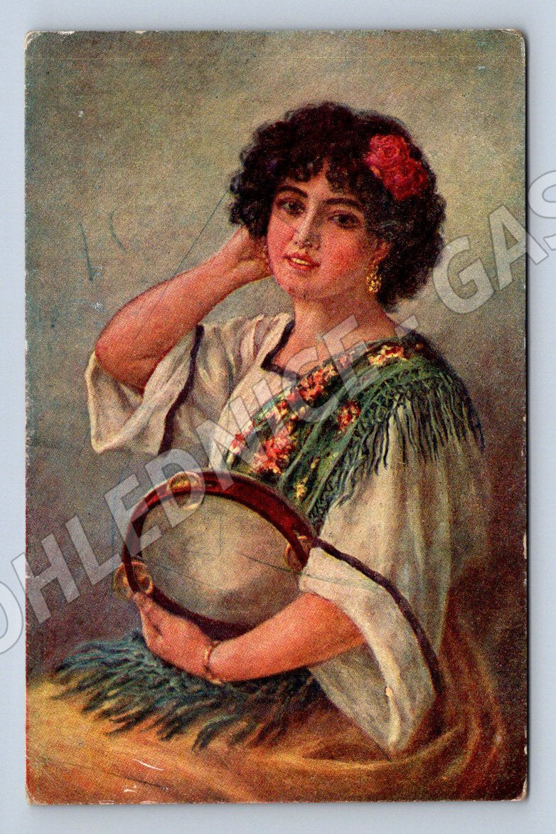 Pohlednice žena s tamburínou jih Evropy (M3110)