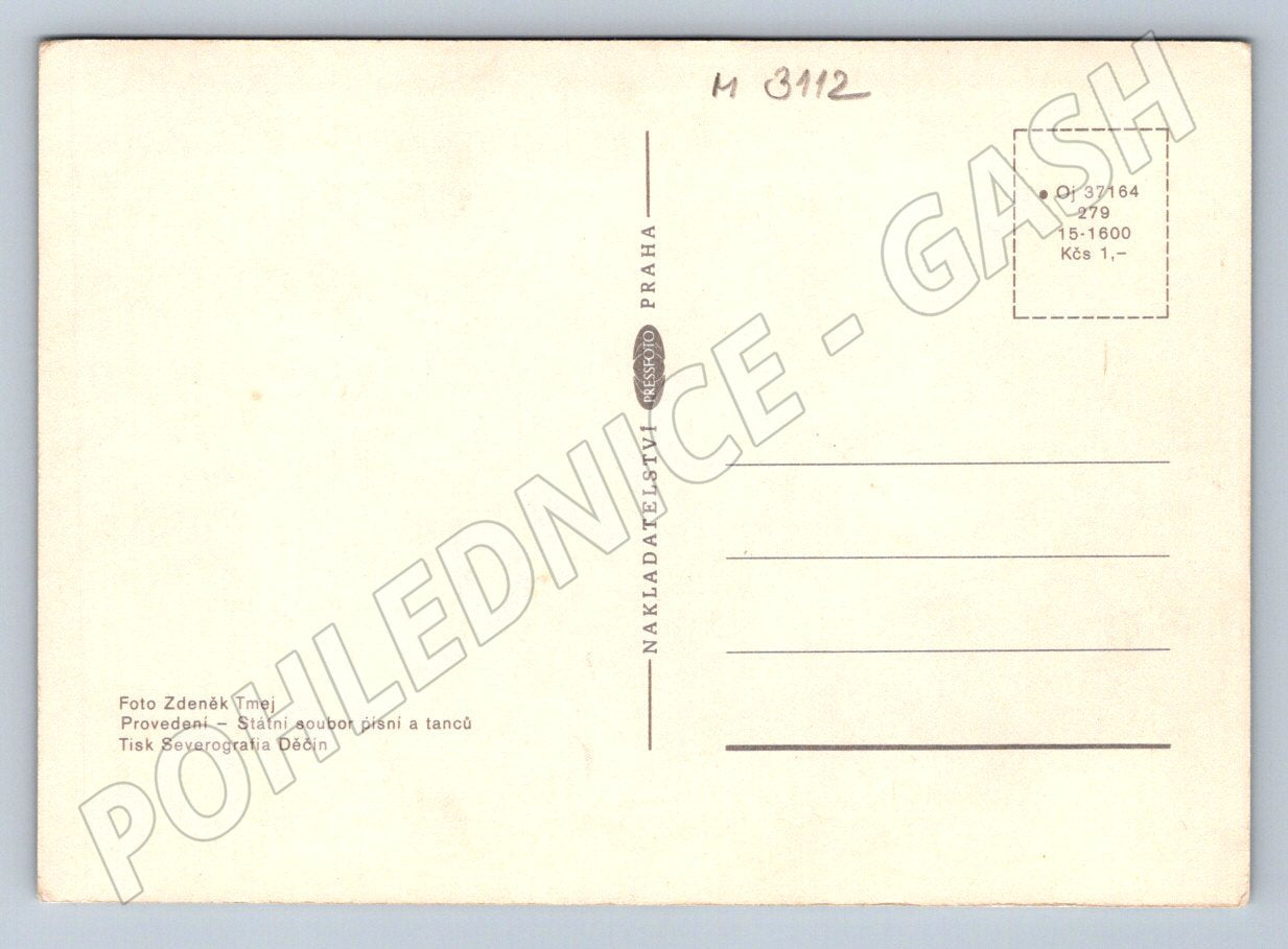 Nabízím k prodeji starší pohlednici zobrazující ženu v tradičním lidovém kroji, držící košík s květinami, na pozadí modré oblohy a zelené trávy. Pohlednice je tištěná fotografií Zdeňka Tmeje, vydaná Nákladem Nakladatelství Pressfoto Praha. Provenience souboru: Státní soubor písní a tanců, tisk Severografia Děčín. Pohlednice je v dobrém stavu, vhodná pro sběratele etnografických a folklórních materiálů.
