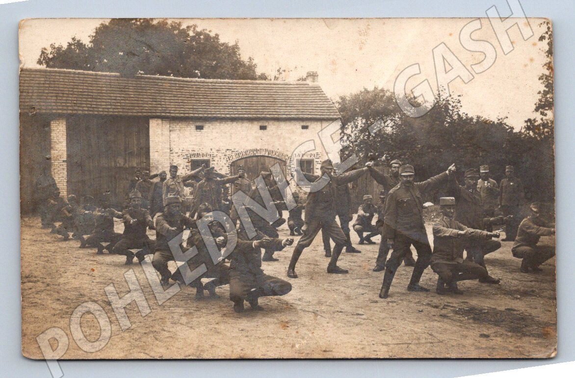 Vintage pohlednice vojáci ve výcviku - etnografie
