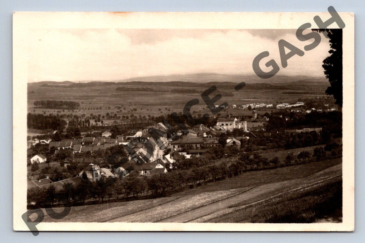 Originální stará pohlednice s názvem Letohrad. Pohlednice zachycuje krásný panoramatický výhled na město Letohrad a jeho okolní krajinu v černobílém provedení, typickém pro období první poloviny 20. století. Na zadní straně je tištěný název LETOHRAD a značka vydavatele Orbis. Pohlednice je neprošlá, mírně zašlá věkem, což dodává na její autentičnosti a sběratelské hodnotě. Formát pohlednice odpovídá malým pohlednicím vydávaným do roku 1950. Vhodné pro sběratele regionálních pohlednic nebo milovníky historie měst ČR.