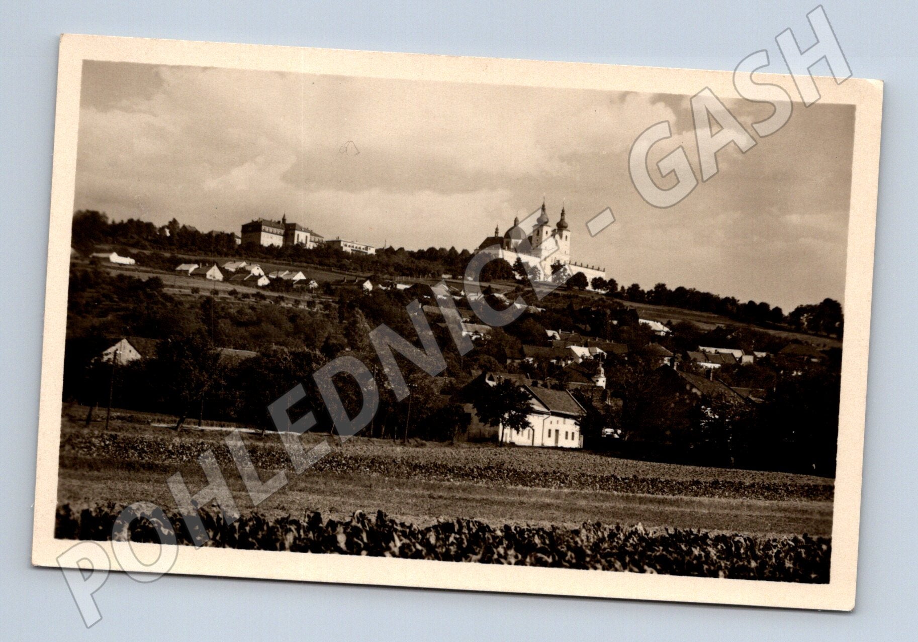 Starší černobílá pohlednice zobrazující obec Samotišky s dominantou poutního místa Svatý Kopeček u Olomouce (okres Olomouc) v pozadí. Pohlednice zachycuje typickou venkovskou krajinu s domky, poli a zalesněným okolím, kde vyniká známá bazilika Navštívení Panny Marie. Na zadní straně najdeme popis: SAMOTIŠKY - v pozadí Svatý Kopeček u Olomouce (okr. Olomouc) , vydavatelství Orbis, cena 0,50 Kčs. Nepopsaná, velmi dobrý stav, vhodná pro sběratele regionálních pohlednic nebo milovníky historie Olomoucka.
