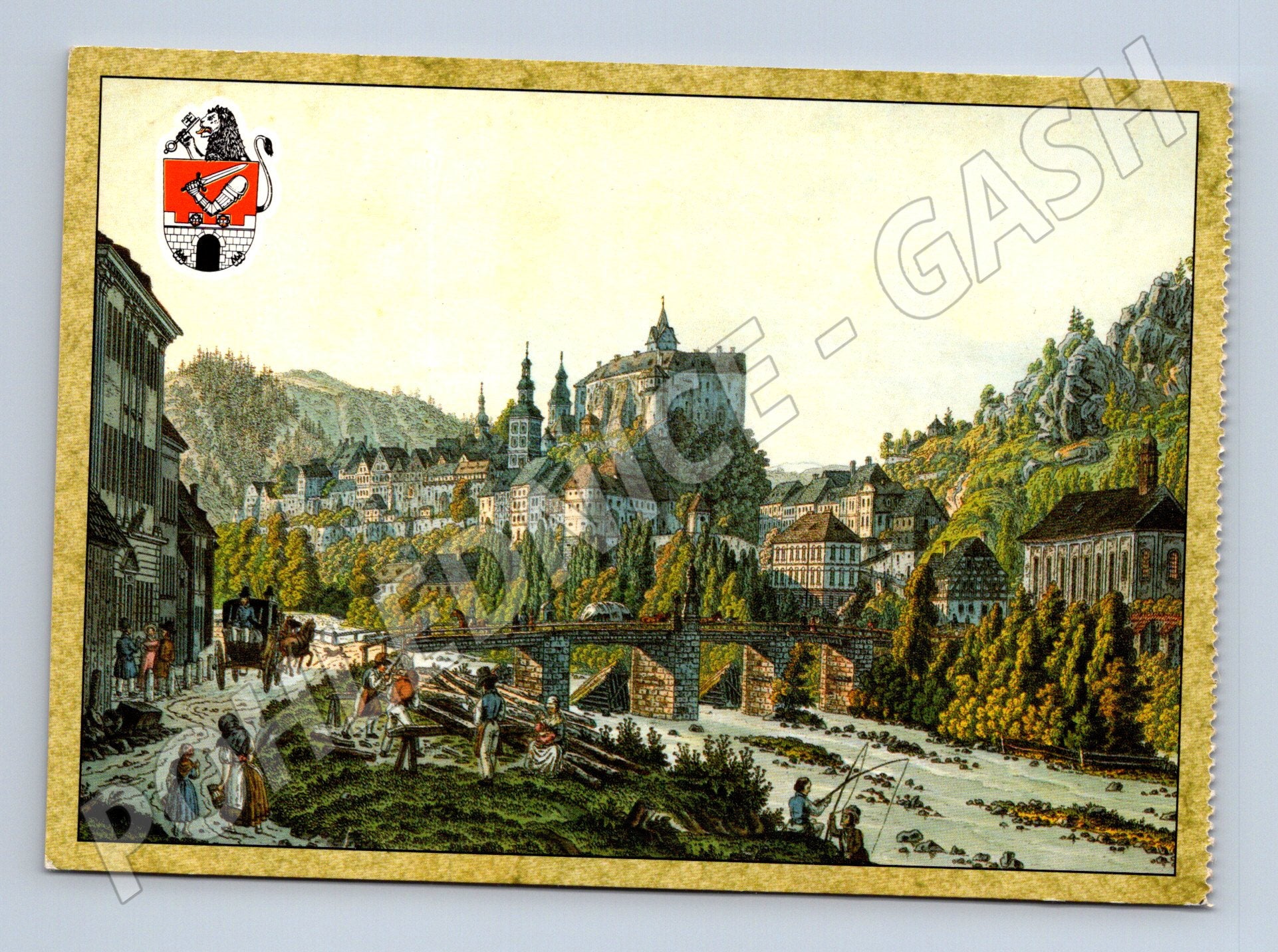 Pohlednice Hrad Loket – historická kresba, nepoužitá