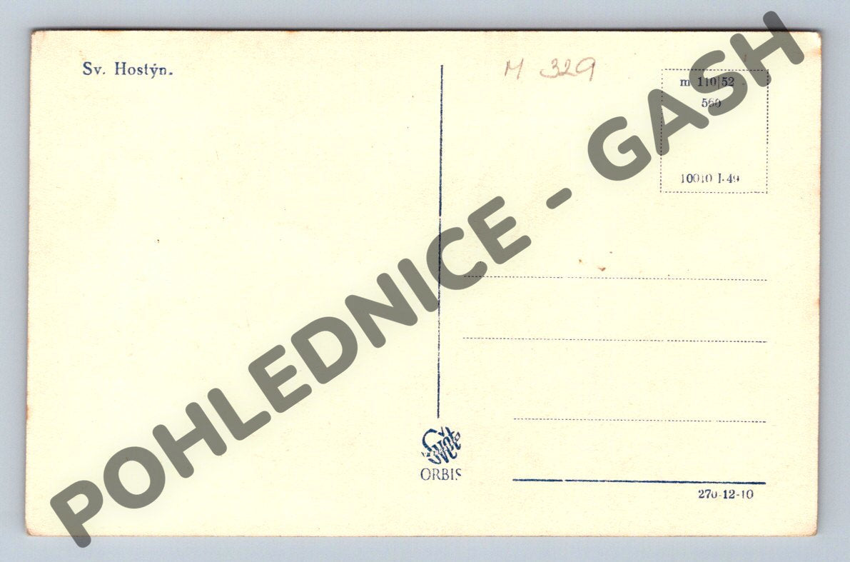Originální černobílá pohlednice zachycující poutní místo Svatý Hostýn. Na přední straně pohlednice je vidět slavná bazilika Nanebevzetí Panny Marie v obklopení lesa. Jedná se o klasickou pohlednici menšího formátu, která je na zadní straně nevyplněná, s nápisem Sv. Hostýn. Tato pohlednice je vhodná pro sběratele historických pohlednic i milovníky památek České republiky. Pohlednice byla vydána firmou Orbis. Vhodná i jako dárek nebo do sbírky.