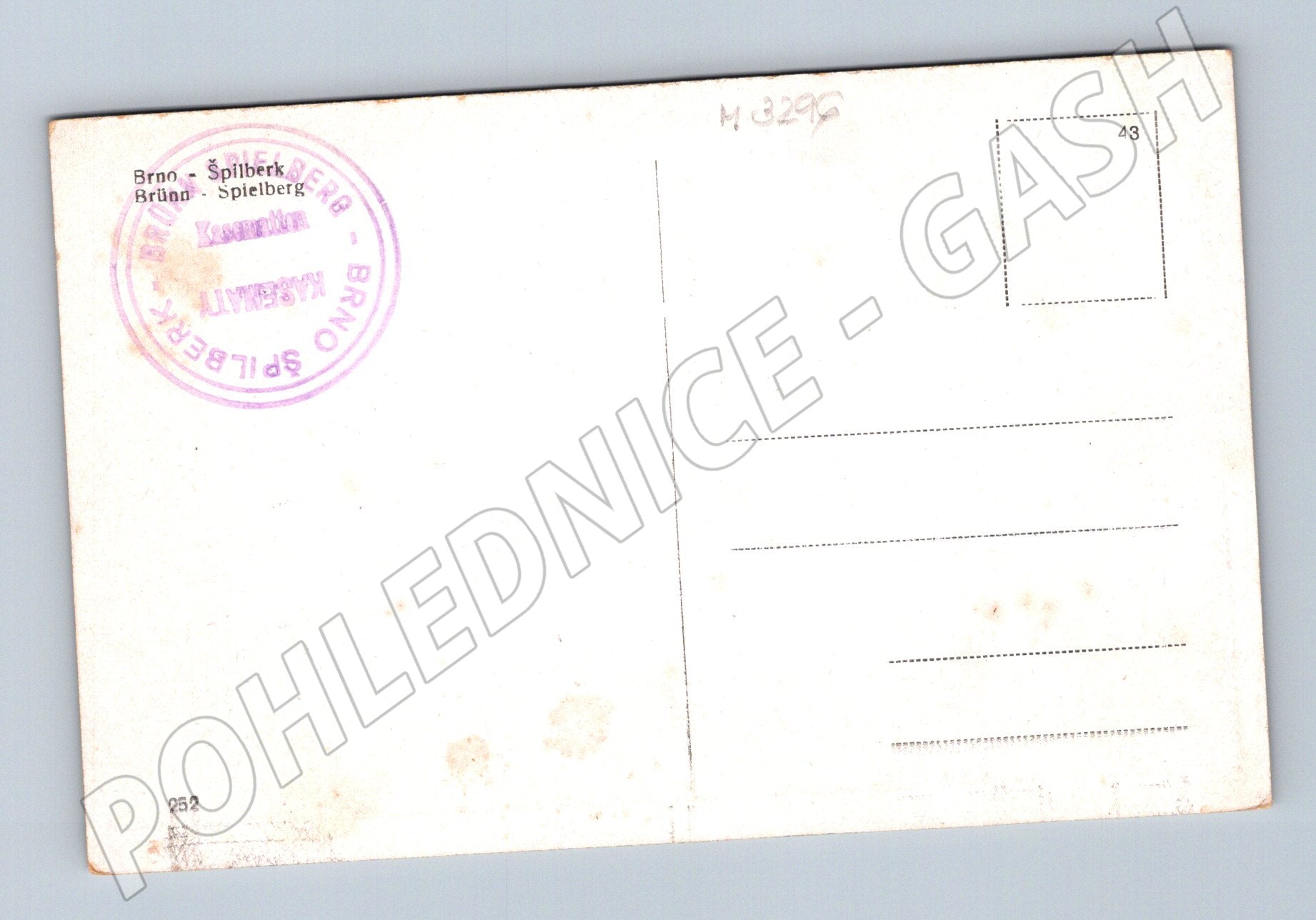 Originální historická pohlednice zobrazující známý brněnský hrad Špilberk. Pohlednice je černobílá, pravděpodobně pochází z první poloviny 20. století. Na zadní straně je kruhové razítko s názvem BRNO - ŠPILBERK - BRÜNN - SPIELBERG . Motiv zachycuje centrální část hradu na vyvýšeném kopci nad městem Brnem, podtržený hustým porostem na svahu. Pohlednice je neprošlá poštou, byla patrně uložena ve sbírce. Okraje a rohy nesou drobné známky stáří. Ideální k doplnění sbírky pohlednic s motivy českých hradů a zámků či regionálních památek Brna.