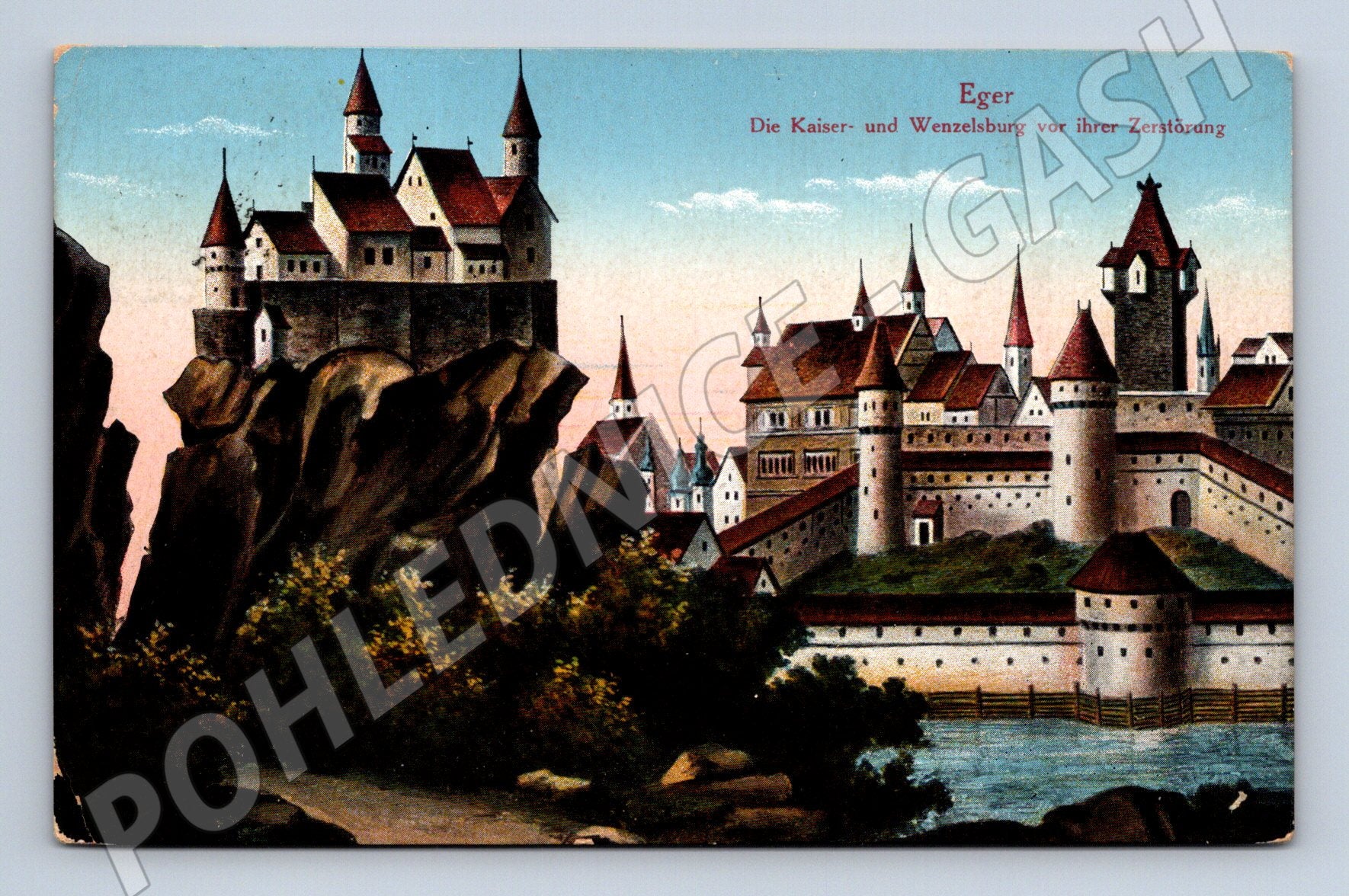 Historická pohlednice Eger (Cheb) – císařský a Václavský hrad LEPŠÍ ZNÁMKA!