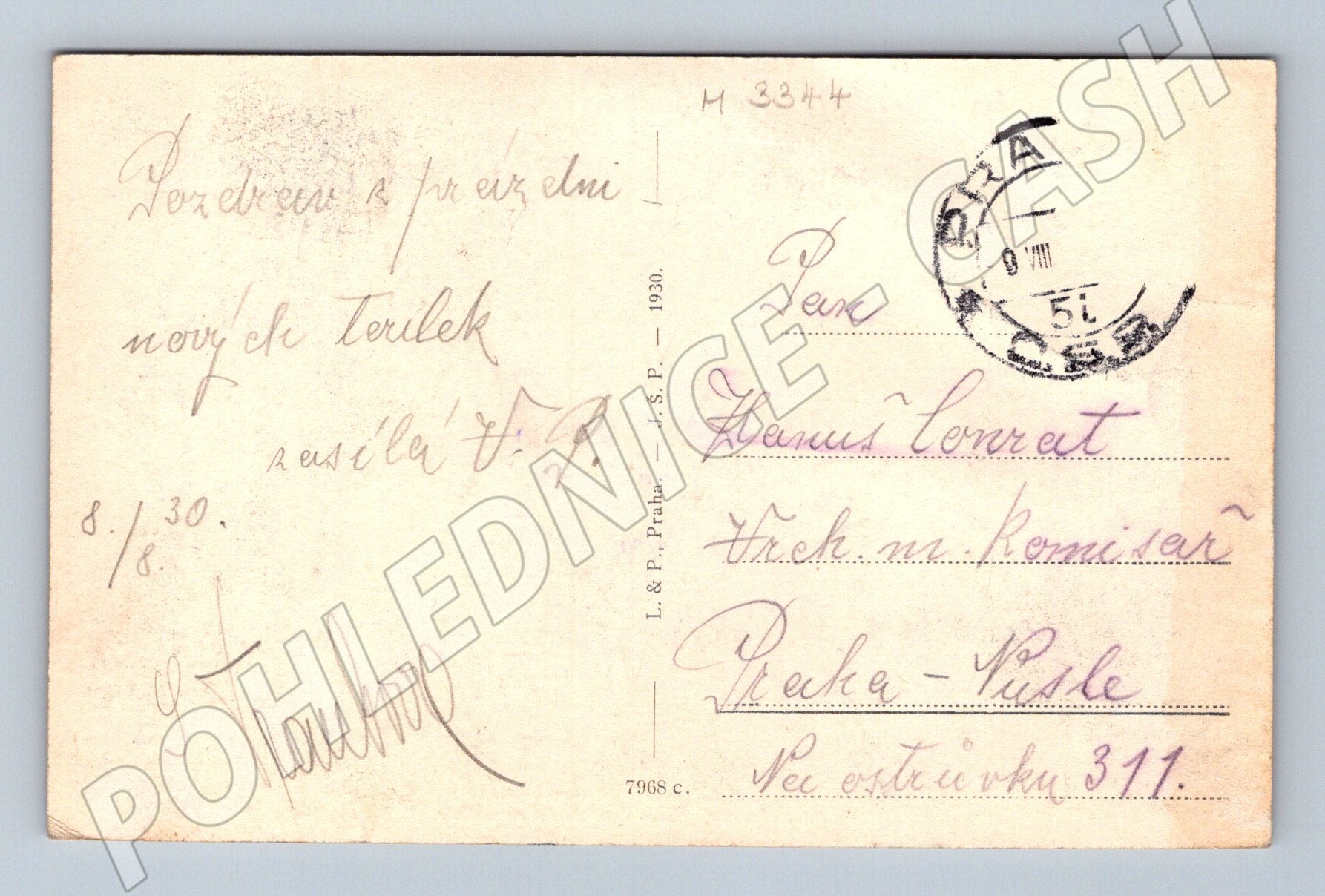 Originální historická pohlednice s vyobrazením zámku Lány, který je sídlem prezidenta republiky. Pohlednice je černobílá, vydaná kolem roku 1930, a na zadní straně je ručně psaný text a známka s razítkem PRAHA. Pohlednice je v pěkném sběratelském stavu, vhodná do sbírky historických pohlednic nebo milovníkům české architektury a historie. Zámek Lány je významným symbolem naší republiky. Pohlednice zachycuje zámek a okolní park ve své dobové podobě.