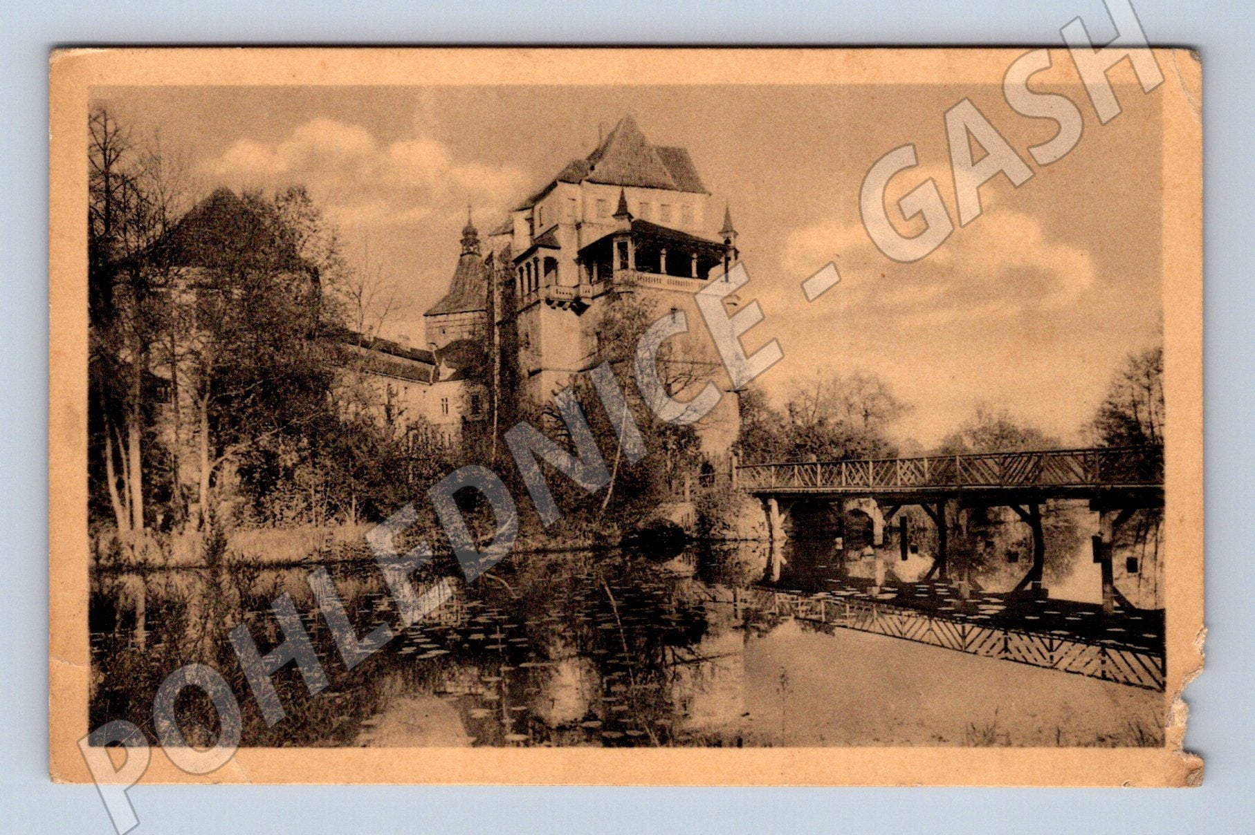 Originální stará pohlednice s motivem zámku Blatná. Na přední straně je krásná černobílá fotografie zámku Blatná s mostem a vodní hladinou. Pohlednice je prošlá poštou, opatřená známkou ČSR a razítkem. Na zadní straně je původní ručně psané věnování, adresa a dobová poštovní známka z roku 1950. Karta je ve sběratelsky atraktivním stavu, místy mírně opotřebovaná, s drobně ohnutým rohem (viz foto). Skvělý přírůstek do sbírky českých pohlednic nebo tématiky hrady a zámky.