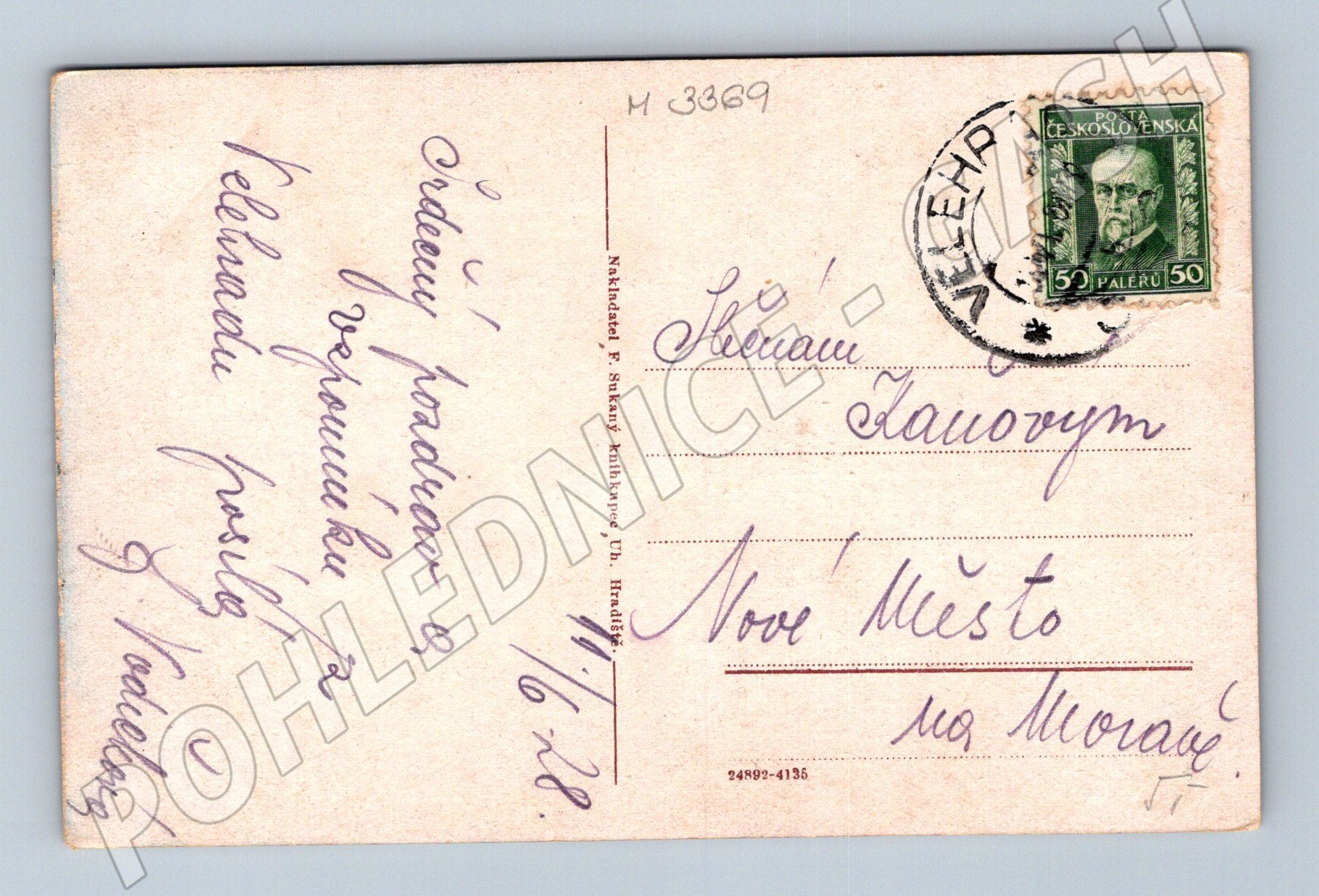 Velehrad – stará pohlednice 1928, barevná, prošlá poštou