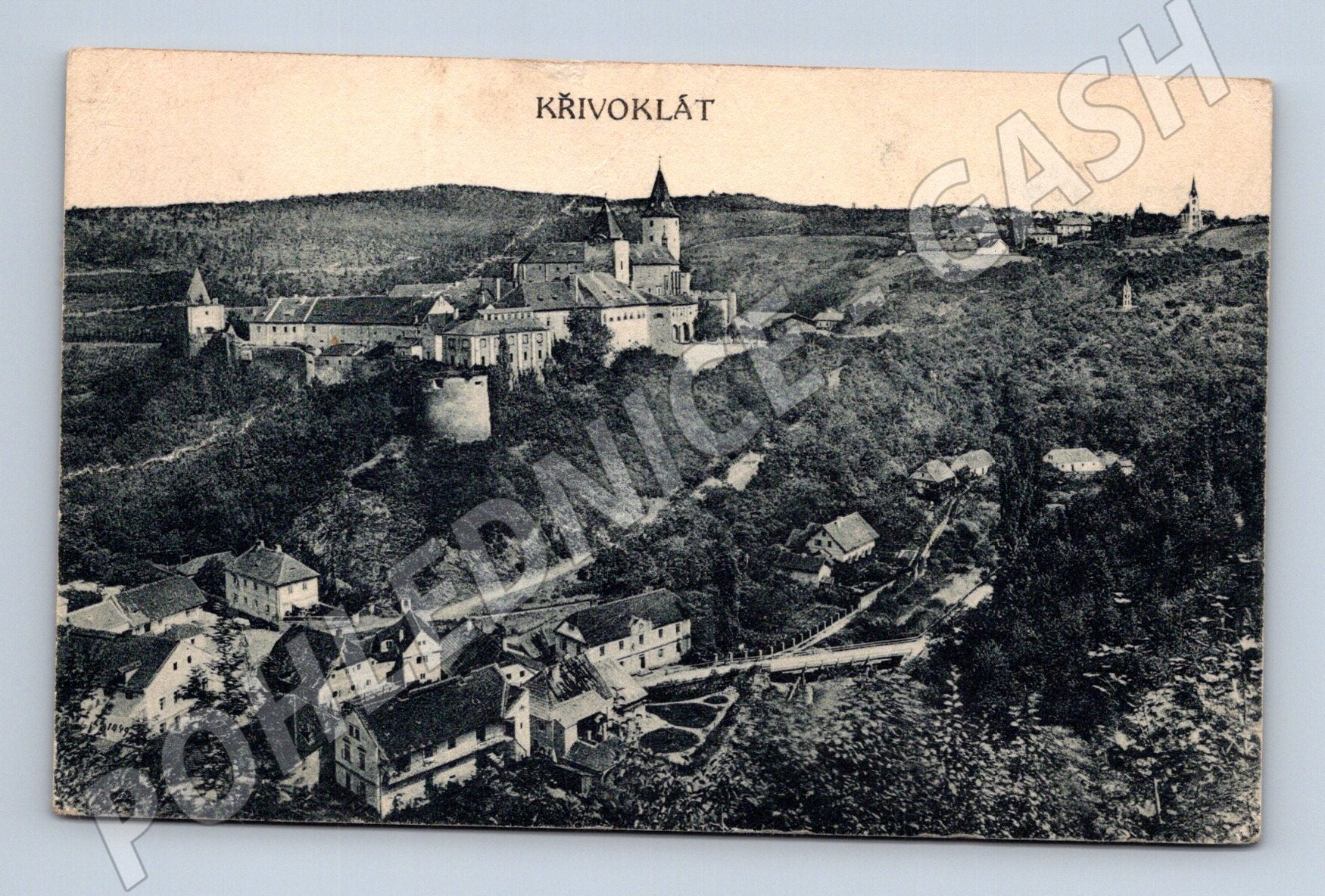 Křivoklát – historická pohlednice, 1919, hrad a okolí