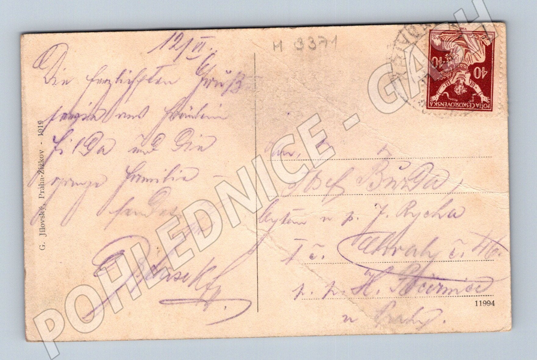 Historická pohlednice s motivem hradu Křivoklát. Pohlednice je černobílá, s detailním zobrazením hradu a okolní krajiny včetně přilehlé vesnice. Na zadní straně se nachází rukou psaný text, razítko a známka „Pošta československá“. Pohlednice byla odeslána v roce 1919, což z ní činí atraktivní sběratelský kousek. Okraje pohlednice jsou mírně opotřebované, odpovídající jejímu stáří. Skvělý doplněk do sbírky historických pohlednic či pro milovníky českých památek.
