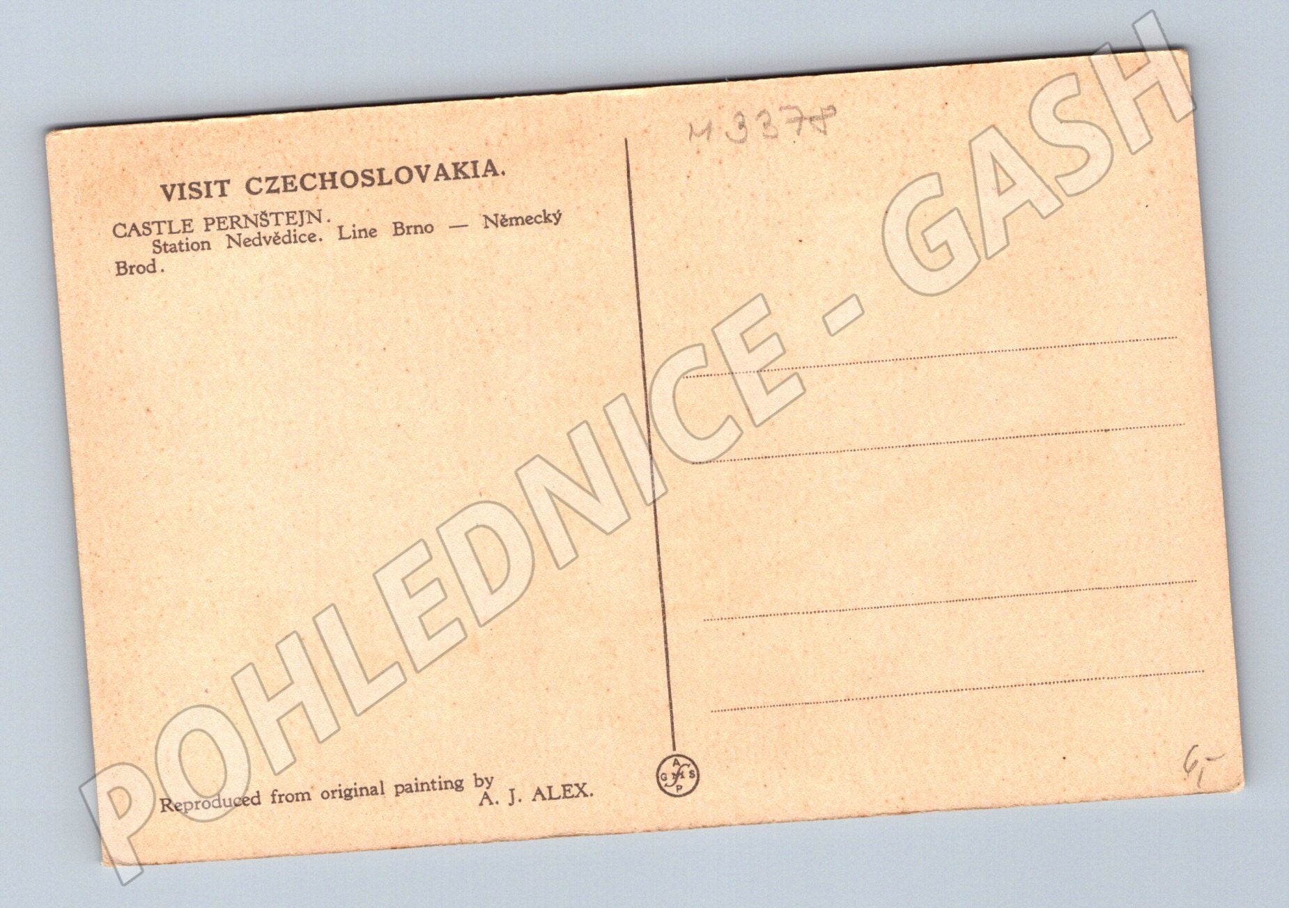 Originální pohlednice zobrazující hrad Pernštejn, nacházející se v malebné krajině u Nedvědice na trati Brno – Německý Brod. Pohlednice je vytištěná podle původní malby A. J. Alexe a propaguje návštěvu Československa. Stav pohlednice je velmi dobrý, neprošlá poštou, bez popisu na zadní straně. Ideální pro sběratele historických pohlednic s motivem českých hradů a zámků nebo milovníky architektury a historie Moravy.