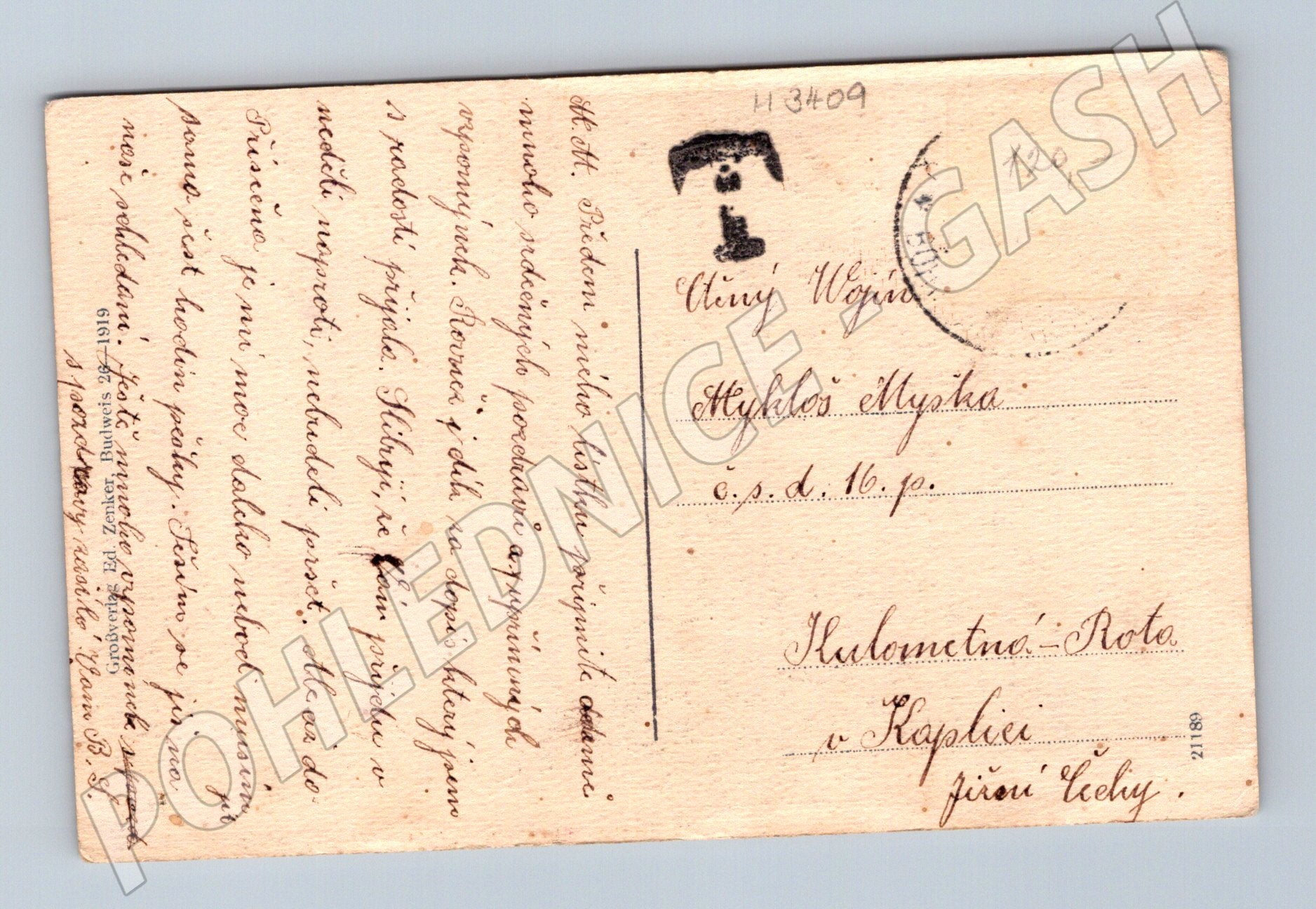 Stará pohlednice s motivem zámku a slavné věže v Českém Krumlově (Krummau - Schlossturm), malý formát, kolorovaná litografie. Na přední straně je pohled na historickou část města s dominantní zámeckou věží, nádherné zpracování mraků a detailů architektury. Pohlednice je opatřena originálním rukopisem a poštovním razítkem, což dokládá její historii a autenticitu. Zadní strana obsahuje adresu, známky stáří a dobový rukopis. Velmi pěkný sběratelský stav, vhodné pro sběratele historických pohlednic, milovníky historie a architektury.