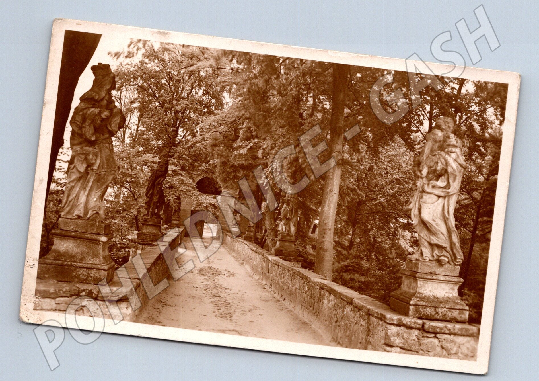 Originální stará pohlednice z oblasti Českého ráje zachycující známý most na Valdštejně. Na přední straně pohlednice je pohled na kamenný most se sochami, který vede k hradu Valdštejn, obklopený vzrostlými stromy a romantickou krajinou. Sepiový tón dodává pohlednici dobovou atmosféru. Na zadní straně je předtištěný popis Český ráj--Most na Valdštýně a místo pro adresu a známku. Stav odpovídá stáří – místy mírné opotřebení rohů, bez zásadních vad. Skvělý sběratelský kousek pro milovníky historických pohlednic a pohledů na české památky.