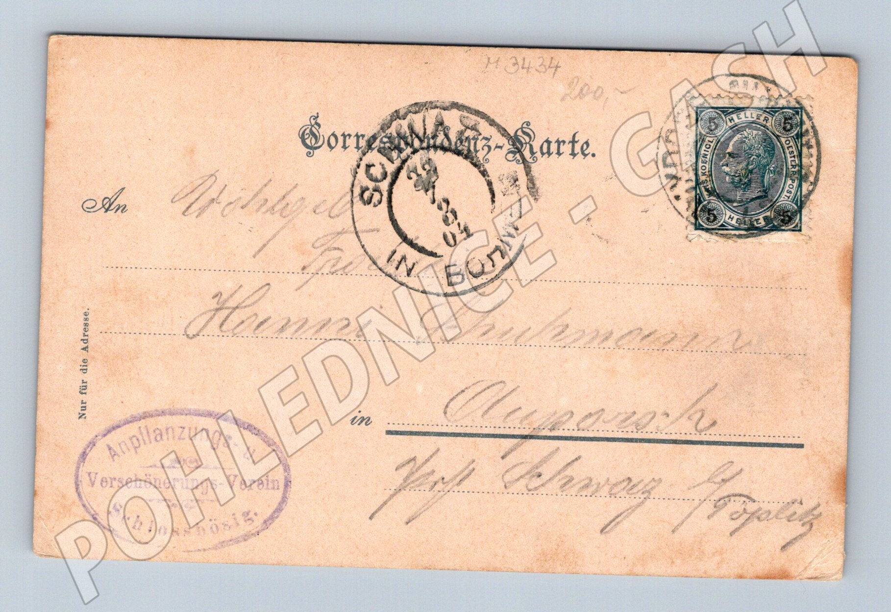Starobylá pohlednice s motivem hradní zříceniny Bečov (Burgruine Bečig), kolorovaná litografie z počátku 20. století. Na přední straně pohlednice je vyobrazen zachovalý hrad na kopci s okolní krajinou a vegetací, ve spodní části ručně psaný vzkaz. Zadní strana obsahuje poštovní razítko a známku, dopisní část je vyplněná rukou. Vzácný sběratelský kousek s patinou stáří, vhodný do sbírky historických pohlednic s motivem hradů a zámků. Stav patrný z fotografií - místy mírné opotřebení odpovídající stáří.