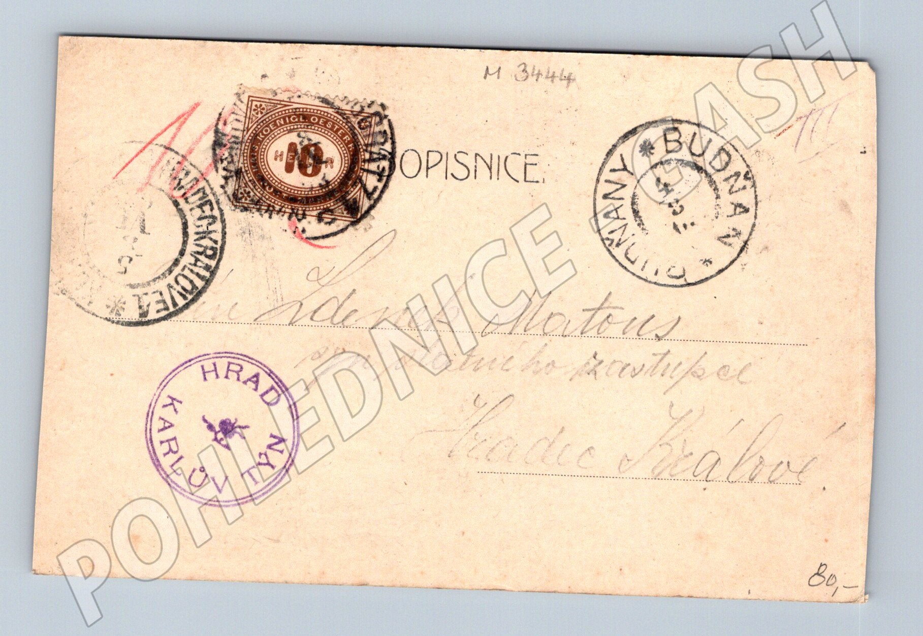 Stará pohlednice Hrad Karlštejn s poštovním razítkem