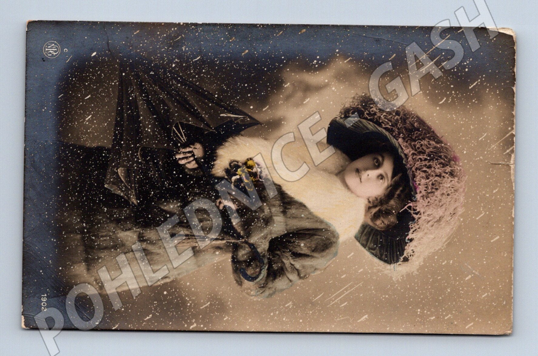 Pohlednice dáma v zimním klobouku 1902 (M3458)