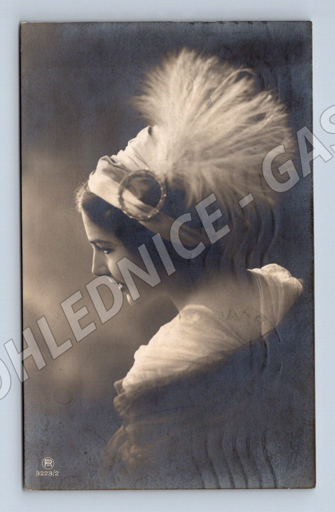 Stará umělecká pohlednice – portrét dívky se závojem