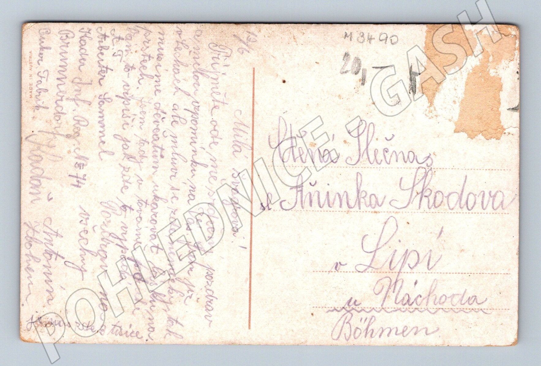 Originální stará pohlednice s portrétem mladé dívky, malovanou v jemných barvách. Pohlednice byla odeslána a je popsána, na rubu je vzkaz a adresa slečny Aninky Škodové do Lipí u Náchoda. Pohlednice nese známky stáří, na okrajích jsou drobné oděrky a rohy jsou mírně ohnuté. Vhodné pro sběratele historických pohlednic či osobností. Rozměr klasický, pěkná ukázka portrétní série počátku 20. století. Unikátní sběratelský kus s autentickou dobovou atmosférou.