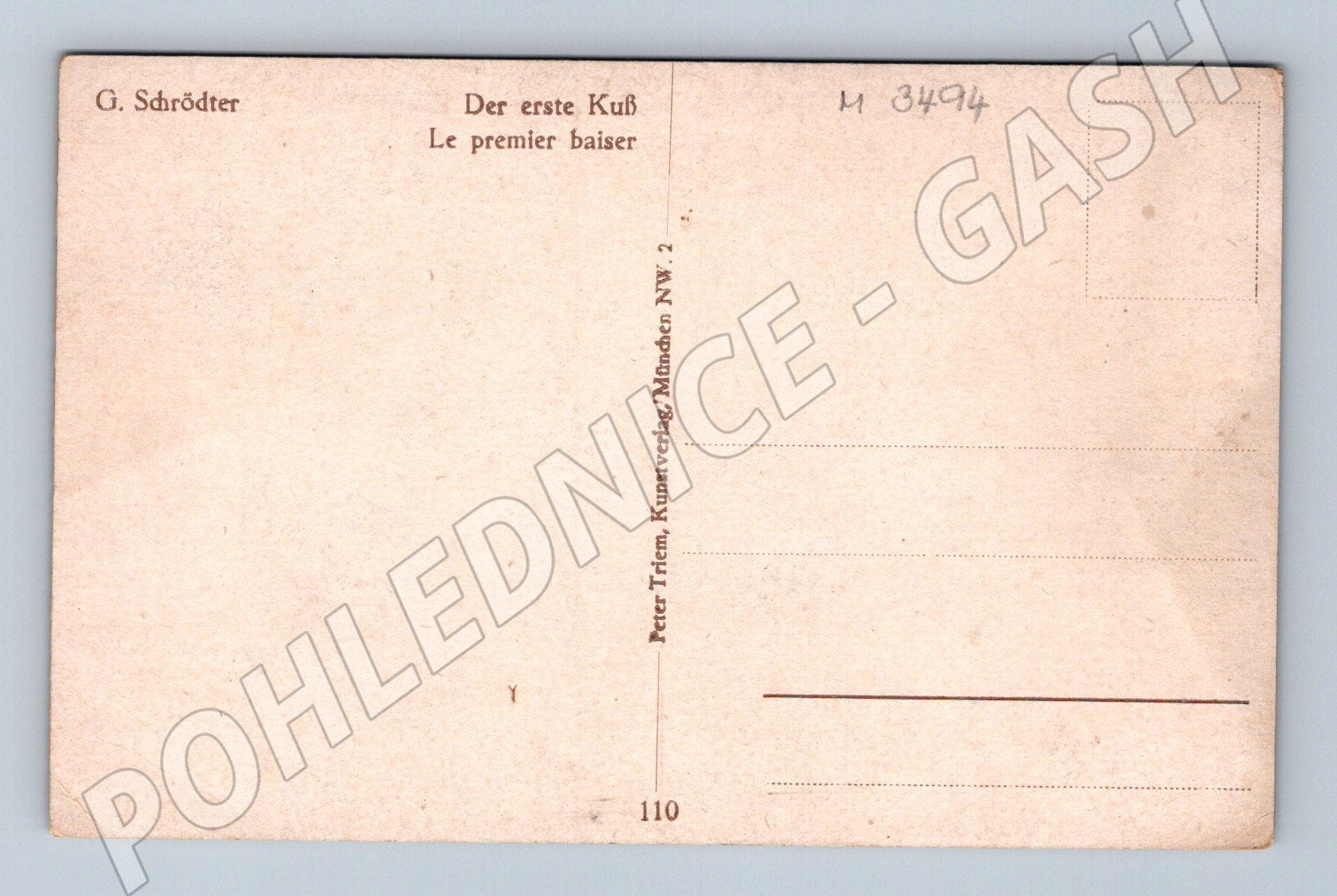 Pohlednice G. Schrödter – Der erste Kuß (První políbení) – malířství