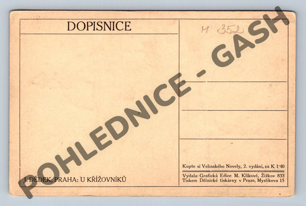 Nabízím starou pohlednici s barevnou kresbou pražské architektury, konkrétně pohled na kostel sv. Františka z Assisi a část Karlova mostu v Praze. Pohlednice je ve starším stylu, pravděpodobně z počátku 20. století, vydaná J. Dědek, Praha: U Křížovníků. Na přední straně nalezneme uměleckou kresbu s výraznými červenými střechami a zelenou kupolí známého pražského chrámu na Starém Městě. Zadní strana je nevyplněná, s nápisem Dopisnice. Vydala Grafická Edice M. Klikové, tisk Dělnické tiskárny v Praze. Pohlednice je vhodná pro sběratele či milovníky pražské architektury a památek. Stav odpovídá stáří – patrné jemné opotřebení a mírné znečištění na okrajích. Unikátní sběratelský kousek!