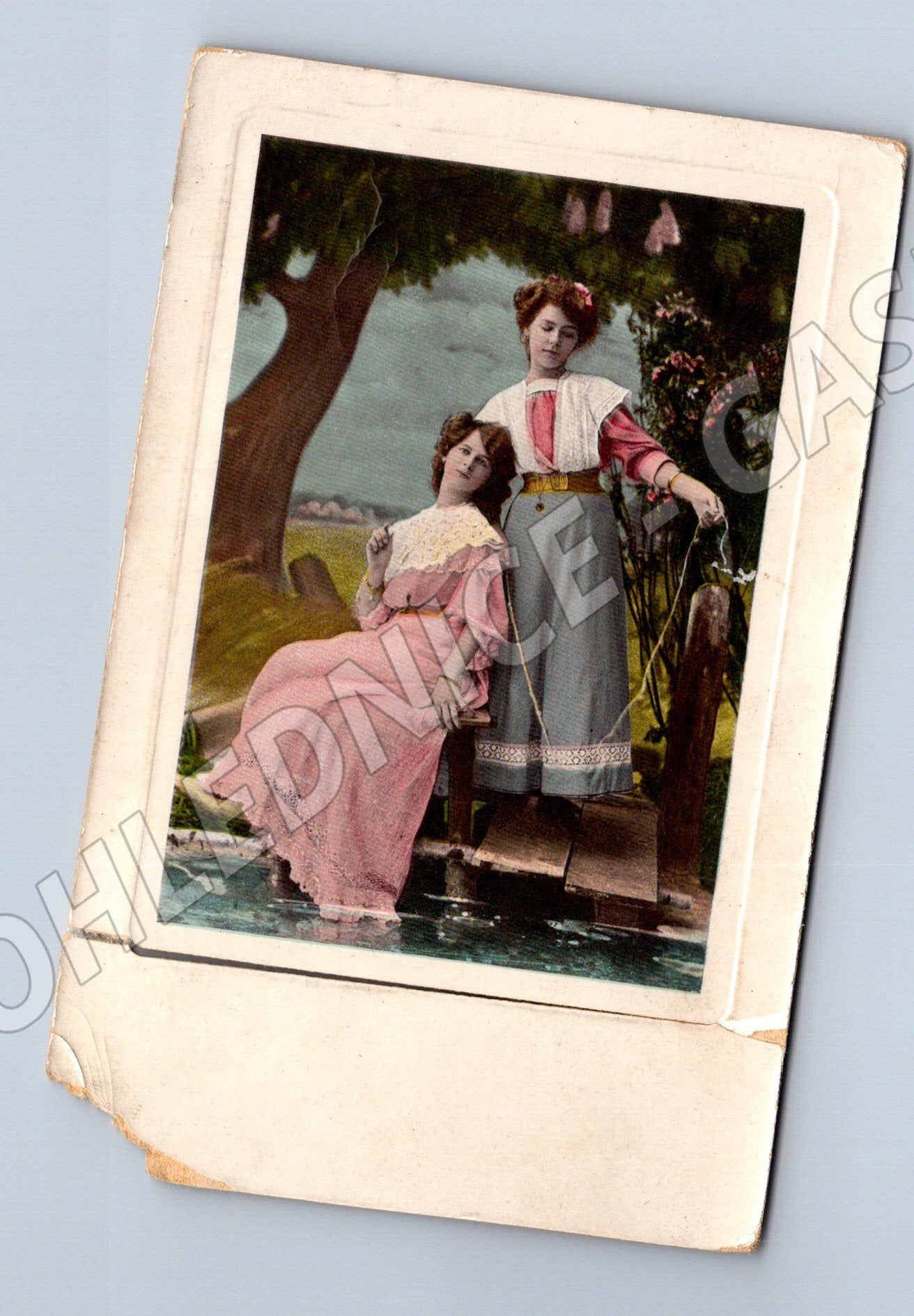 Starobylá kolorovaná pohlednice – dvě dívky, 1911, ČR, malý formát