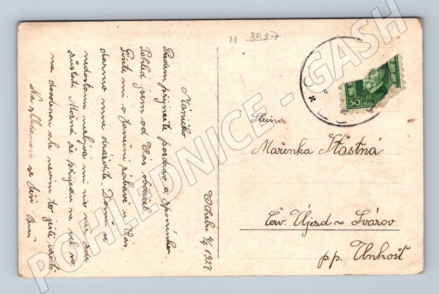 Nabízím starou ručně kolorovanou pohlednici herečky ze začátku 20. století, datovanou rokem 1927. Pohlednice je opatřena poštovní známkou v hodnotě 50 haléřů a originálním rukopisným textem na zadní straně. Na přední straně je portrét elegantní mladé dámy s vlnitými vlasy, v kožichu a s barevnými květinami. Celkový stav pohlednice je velmi dobrý, mírné stopy stáří a opotřebení na okrajích. Ideální sběratelský kousek pro milovníky historických pohlednic a filmových osobností.